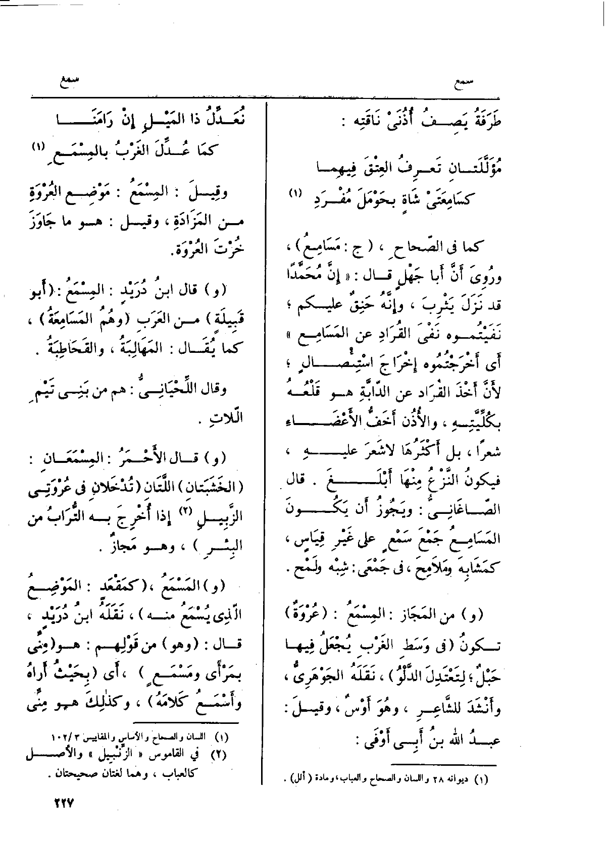 (مُؤَلَّلَتانِ تَعْرِفُ العِتْقَ فيهِما ... كسامِعَتَيْ شاةٍ بحَوْمَلَ مُفْرَدِ)