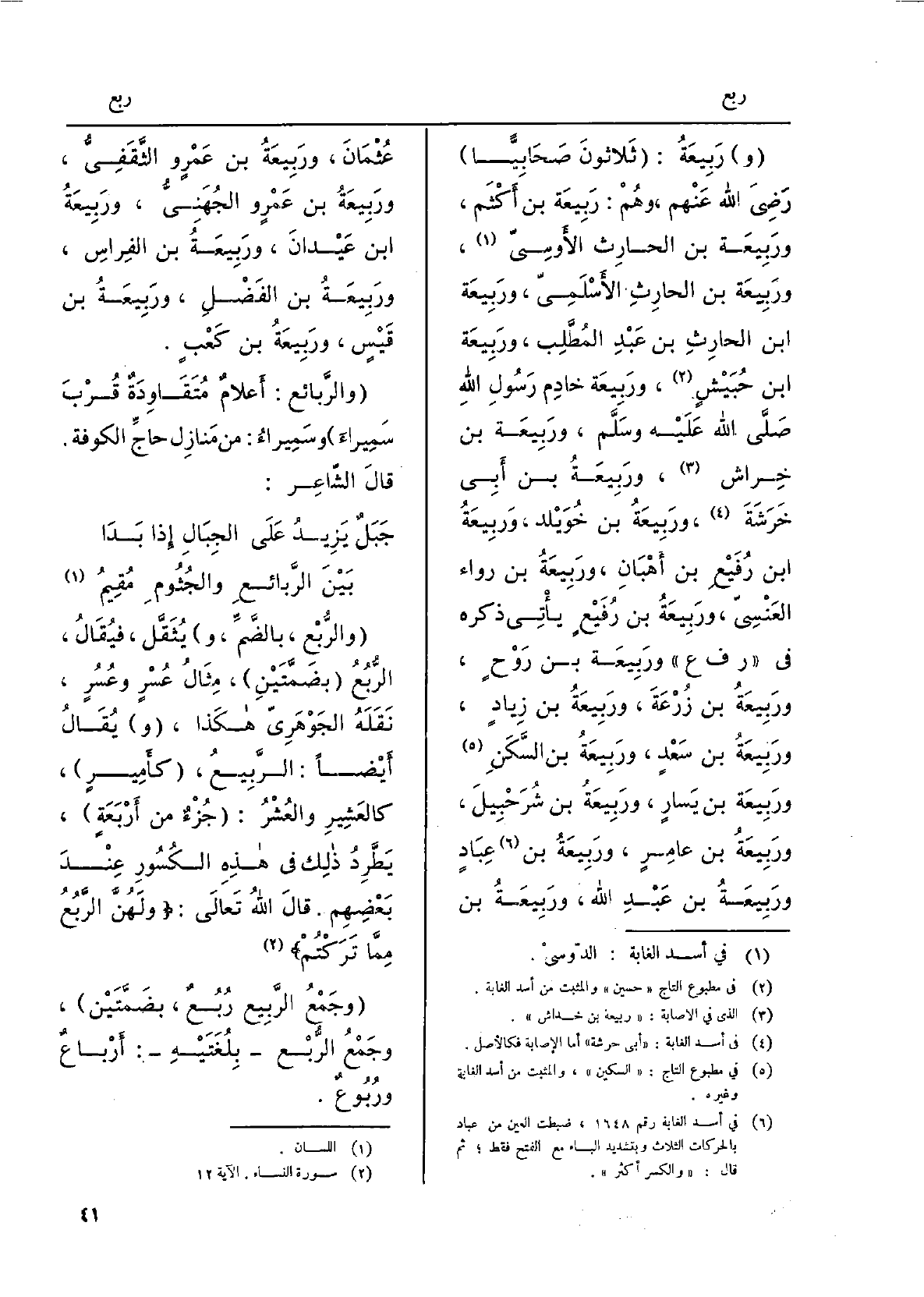 وَرَبِيعَة بن زيادٍ، وربيعةُ بن سَعدٍ، وَرَبِيعَة بن السَّكَن ورَبيعة بن يَسارٍ، وَرَبِيعَة بن شرحبيلَ، وَرَبِيعَة بن عامِرٍ، وربيعةُ بن عِبادٍ وربيعةُ بن عَبْد الله، وربيعةُ بن عُثمانَ، وربيعةُ بن عَمروٍ الثَّقفيُّ، وربيعةُ بنُ عَمْروٍ الجُهَنِيُّ، وربيعةُ بنُ عَيْدانَ، وربيعةُ بن الفِراسِ، وربيعَةُ بنُ الفَضْلِ، وربيعةُ بنُ قَيْسٍ، وربيعةُ بن كَعْبٍ. والرَّبائع: أَعلامٌ مُتَقاوِدَةٌ قُربَ سَميراءَ، وسَميراءُ: من مَنازل حاجِّ الْكُوفَة. قَالَ الشَّاعر: