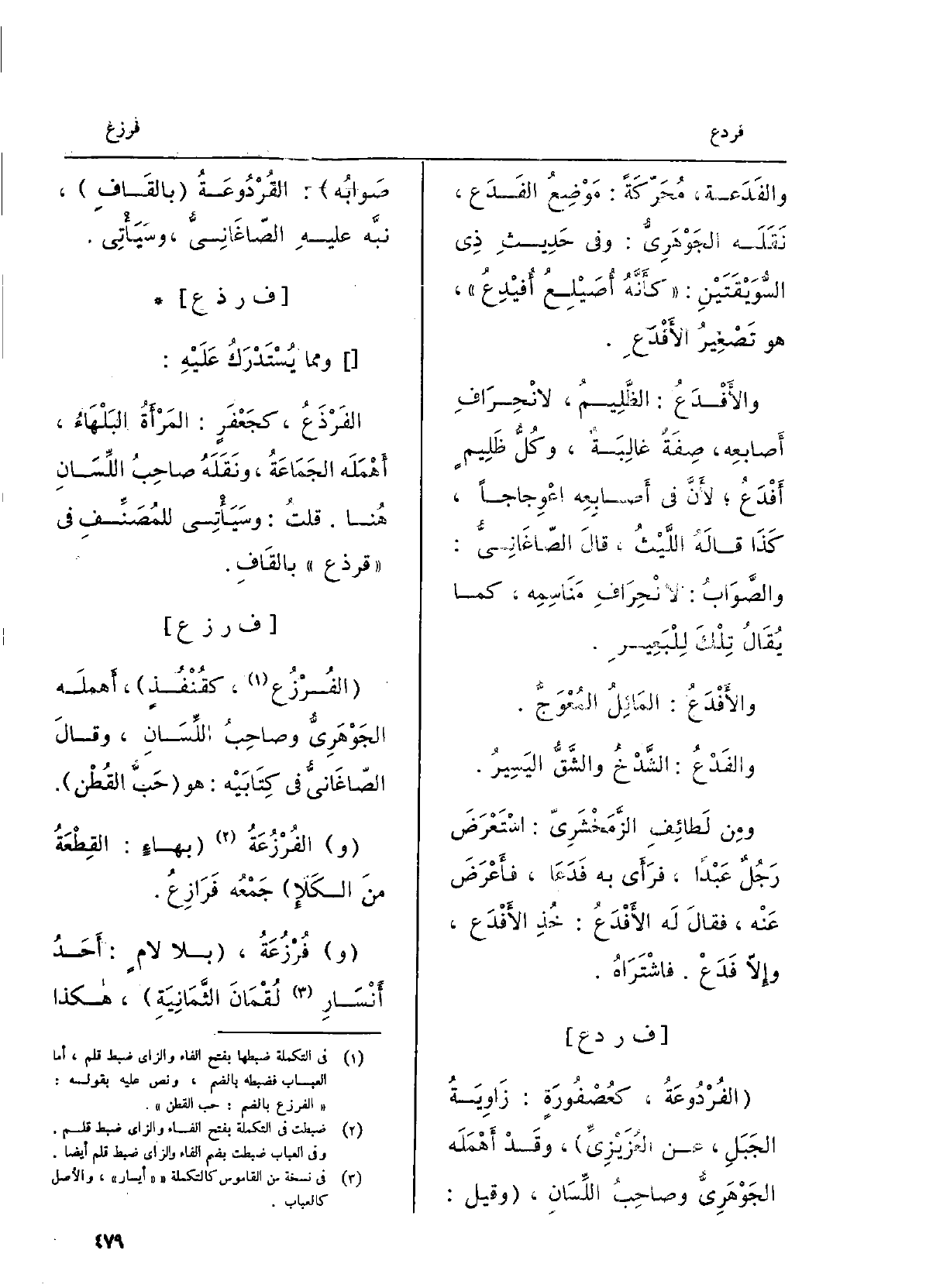 ومِمّا يُسْتَدْرَك عَلَيْهِ: الفَرْذَع، كَجَعْفَرٍ: المرأةُ البَلْهاء، أهمله الجَماعةُ، وَنَقله صاحبُ اللِّسان هُنَا.