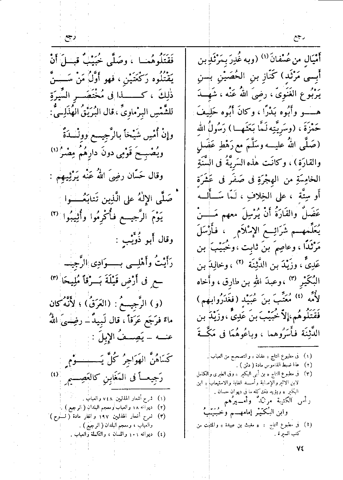 (صَلَّى الإلَهُ على الّذينَ تَتابَعوا ... يَوْمَ الرَّجيعِ فأُكْرِمُوا وأُثيبوا)