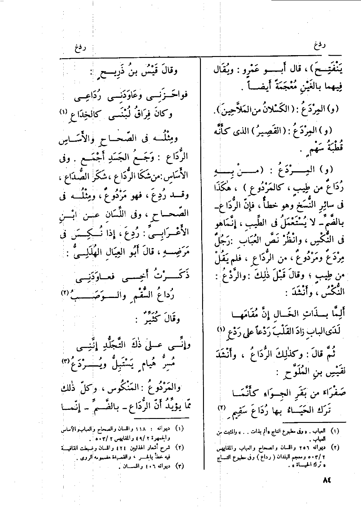 ثمّ قَالَ: وَكَذَلِكَ الرُّداع، وأنشدَ لقَيسِ بنِ المُلَوَّح:)