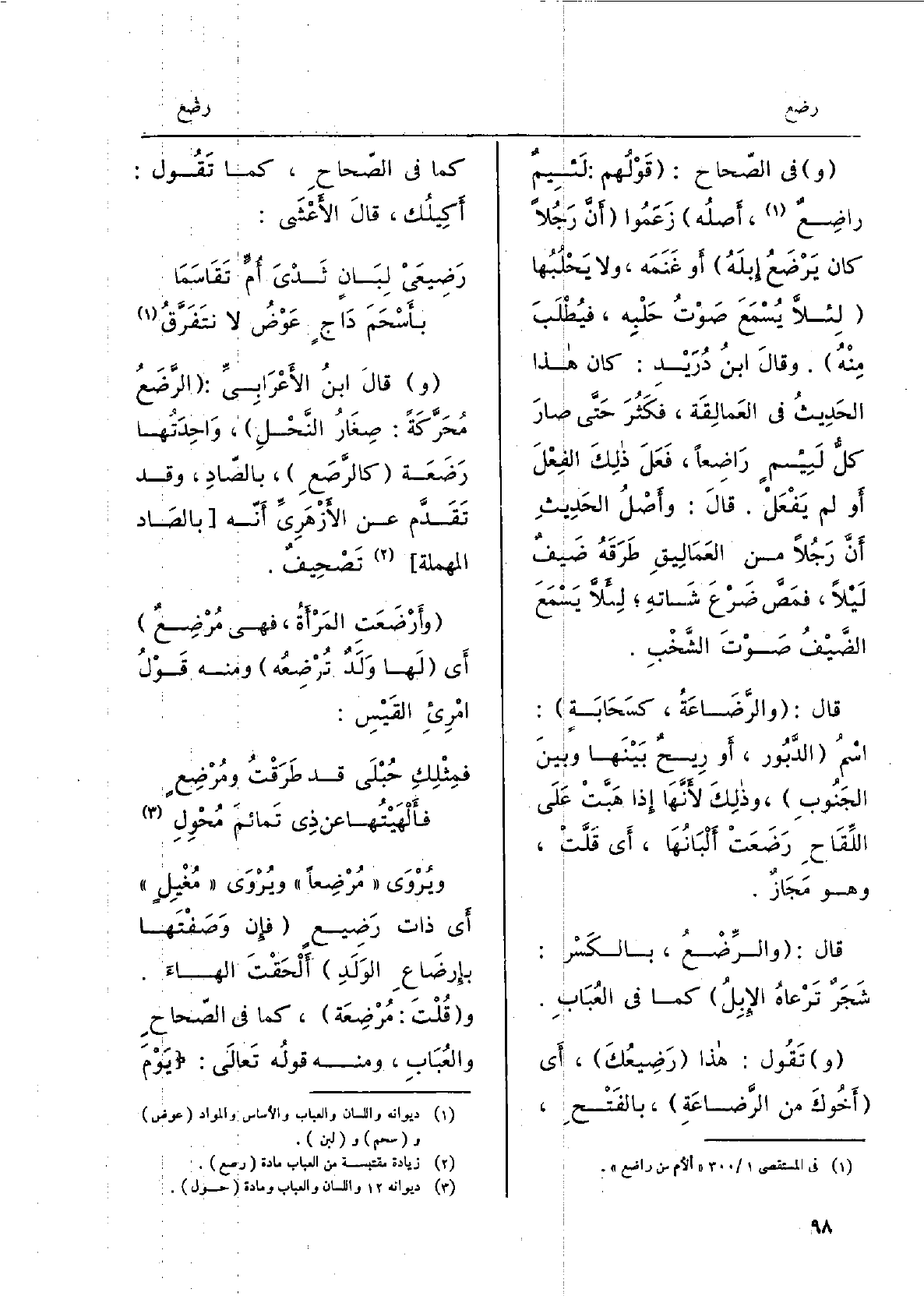 وَفِي الصِّحاح: قَوْلَهَم: لئيمٌ راضعٌ، أَصلهُ زَعَمُوا أنَّ رجلا كانَ يَرْضَعُ إبلَهُ وَلَا يَحْتلُبُها لِئَلَّا يُسمعَ صَوْتُ حَلْبهِ فَيُطْلَبَ مِنْهُ. وقالَ ابنُ دُرَيدْ: كَانَ)