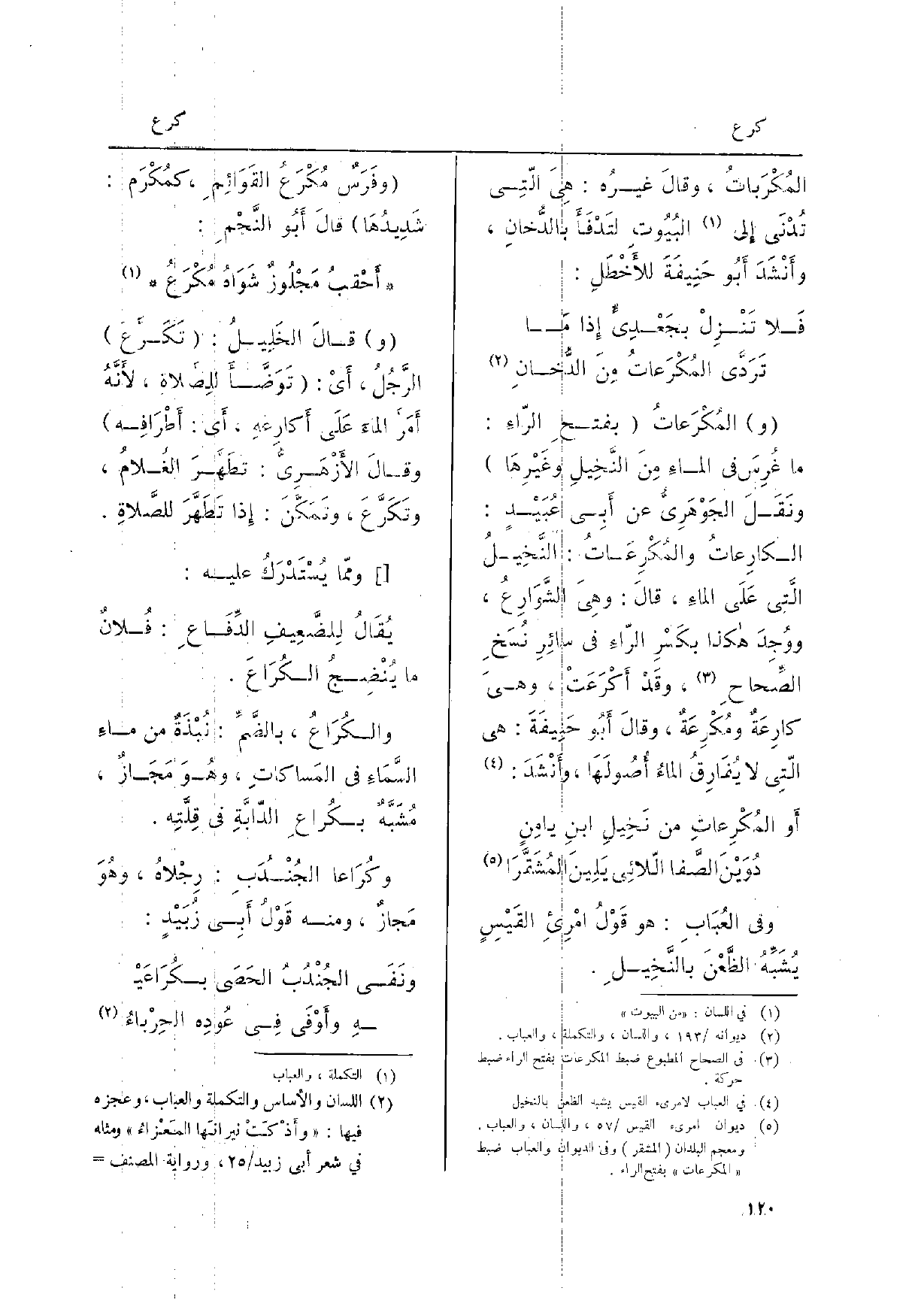 وفَرَسٌ مُكْرَعُ القَوَائِمِ، كمُكْرَم: شَدِيدُها قالَ أَبُو النَّجْمِ: أحْقبُ مَجْلُوزٌ شَوَاهُ مُكْرَعُ وقالَ الخَليلُ: تَكَرَّعَ الرَّجُلُ، أَي: تَوضَّأَ للصلاةِ، لأنَّهُ أمَرَّ الماءَ على أكارِعِه، أَي: أطْرافِهِ وقالَ الأزهَرِيُّ: تَطَهَّرَ الغُلامُ، وتَكَرَّعَ، وتَمَكَّنَ: إِذا تَطَهَّرَ للصَّلاةِ.