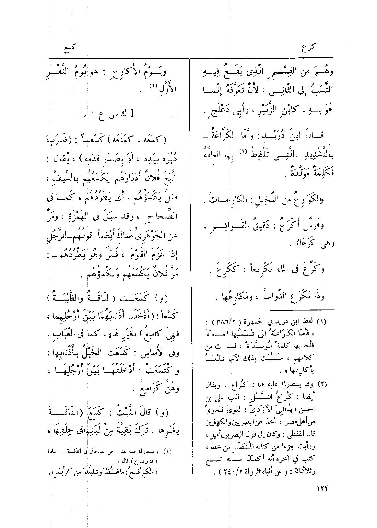 قالَ ابنُ دُرَيدٍ: وأمّا الكَرَّاعَةُ بالتَّشْدِيدِ الّتِي تَلْفِظُ بهَا العامَّةُ فكَلِمَةٌ مُوَلَّدَةٌ.