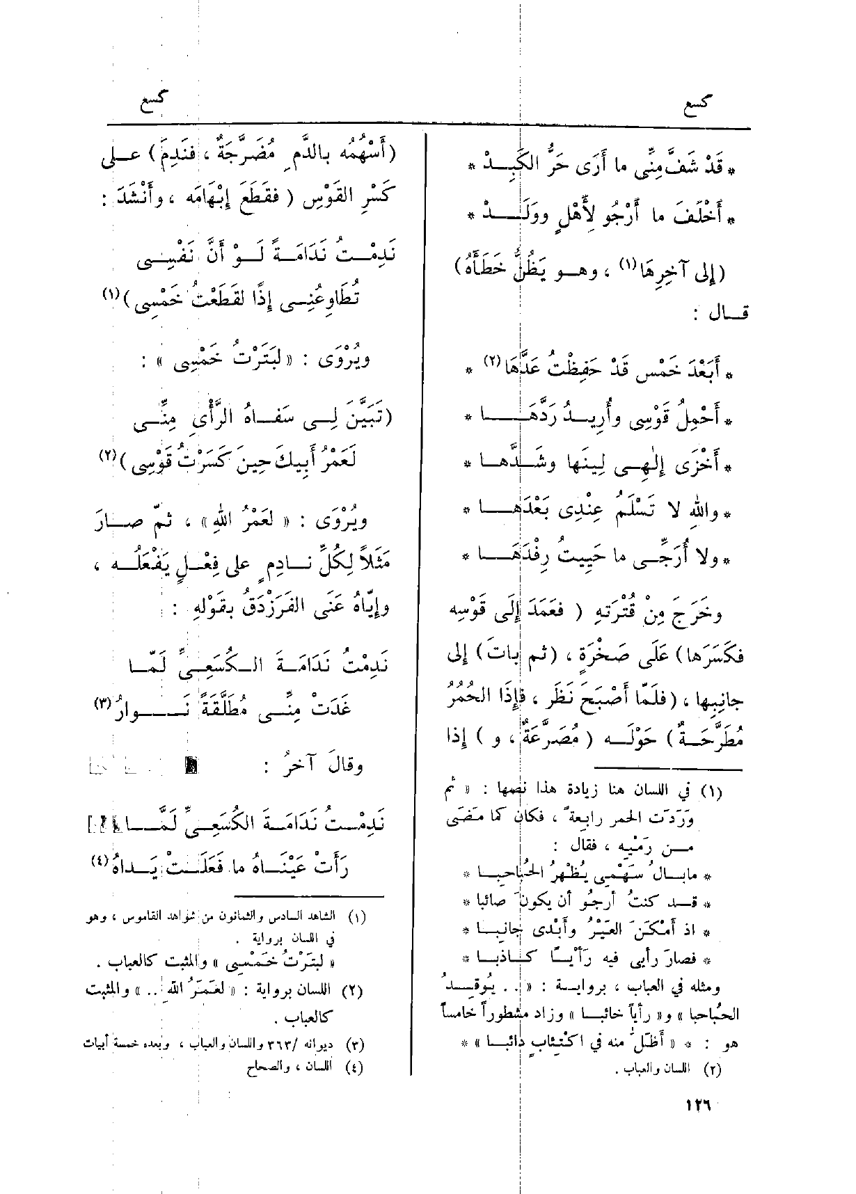 (تَبَيَّنَ لِي سَفاهُ الرَّأيِ مِنِّي ... لعَمْرُ أبِيكَ حينَ كَسَرْتُ قَوْسِي)