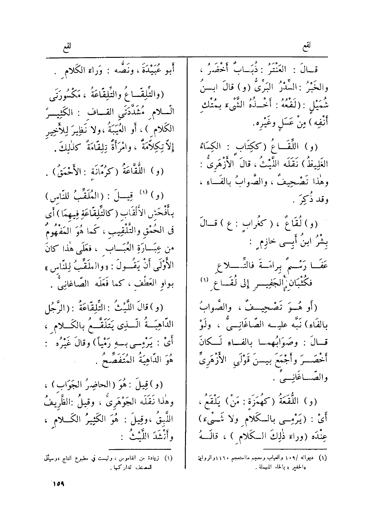 أَو هُوَ تَصِحِيفٌ، والصَّوابُ بالفاءِ نَبَّه عَلَيْهِ الصّاغَانِيُّ ولوْ قالَ: وصَوابُهما بالفاءِ لكانَ أخْصَرَ وأجْمَعَ بينَ قَوْلَي الأزْهَرِيِّ والصّاغَانِيُّ واللُّقَعَةُ كهُمَزَةٍ: مَنْ يَلْقَعُ، أَي: يَرْمِي بالكَلامِ وَلَا شَيءَ عنْدَه وراءَ ذلكَ الكَلامِ، قالَهُ أَبُو عُبَيْدَةَ، ونَصُّه: وراءَ الكَلامِ.