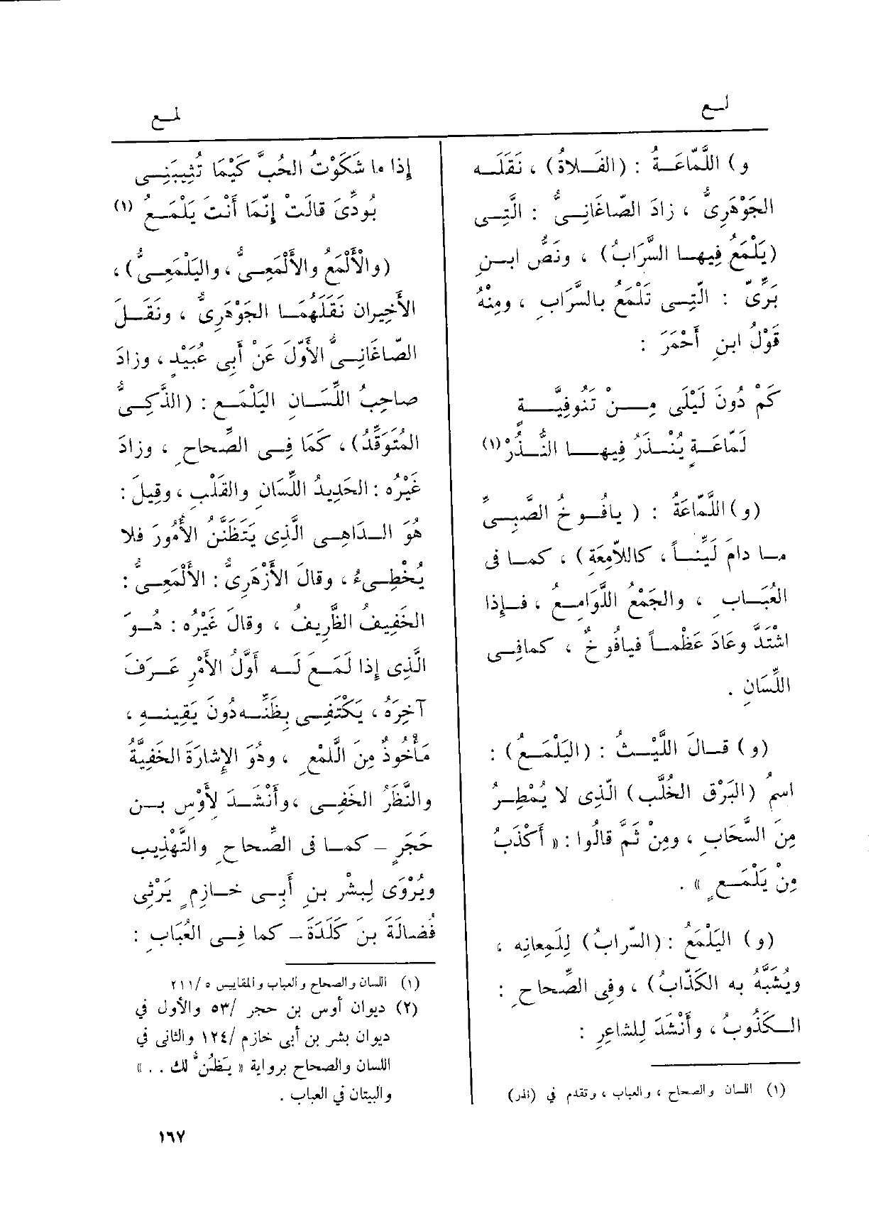 (إِذا مَا شَكَوتُ الحُبَّ كَيْمَا تُثِيبنِي ... فُودِّيَ قالتْ إنّما أنْتَ يَلْمَعُ)