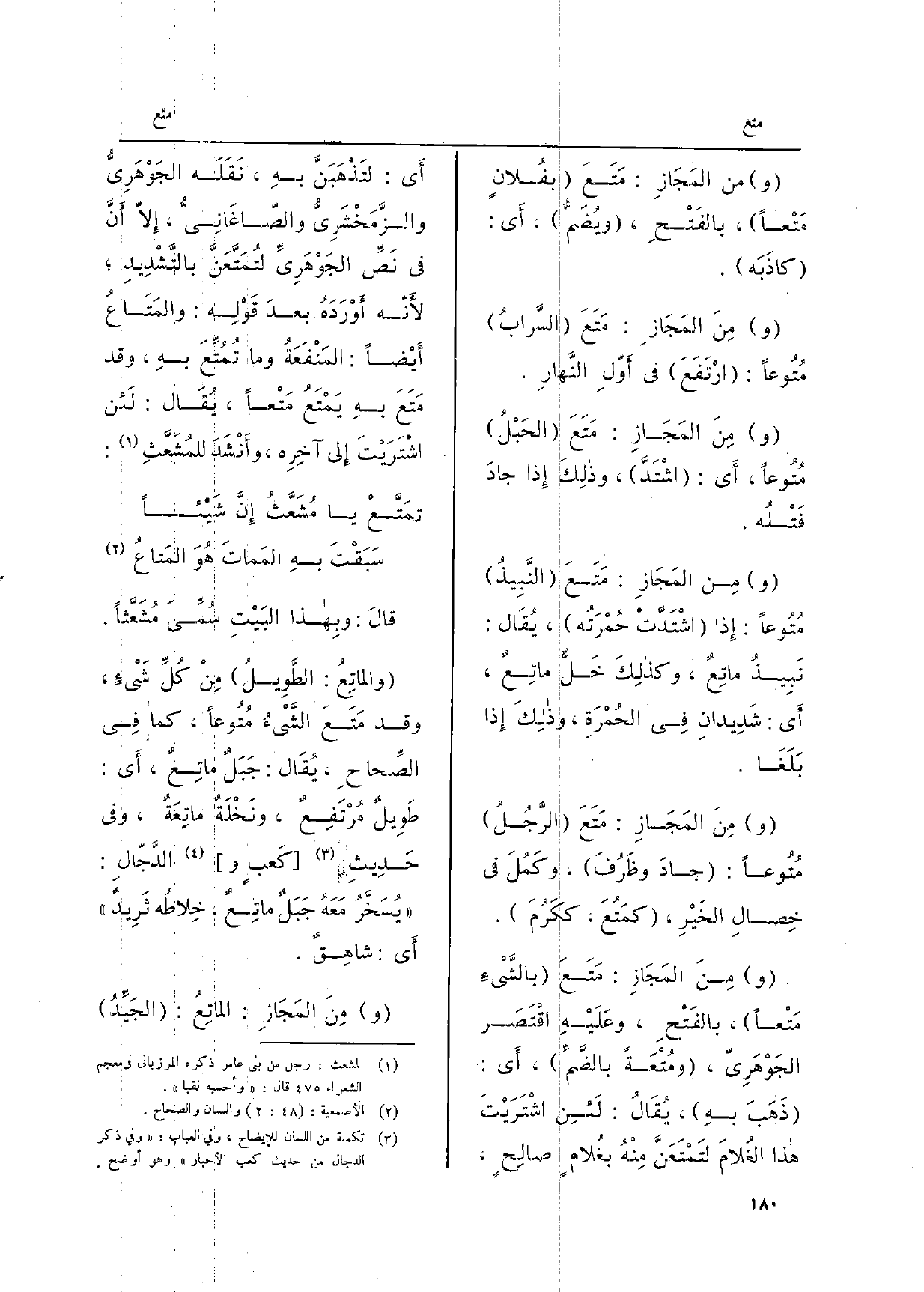 وَمن المَجَازِ: مَتَعَ الرَّجُلُ مُتُوعاً: جادَ وظَرُفَ، وكَمُلَ فِي خِصالِ الخَيْرِ، كمَتُعَ، ككَرُمَ.