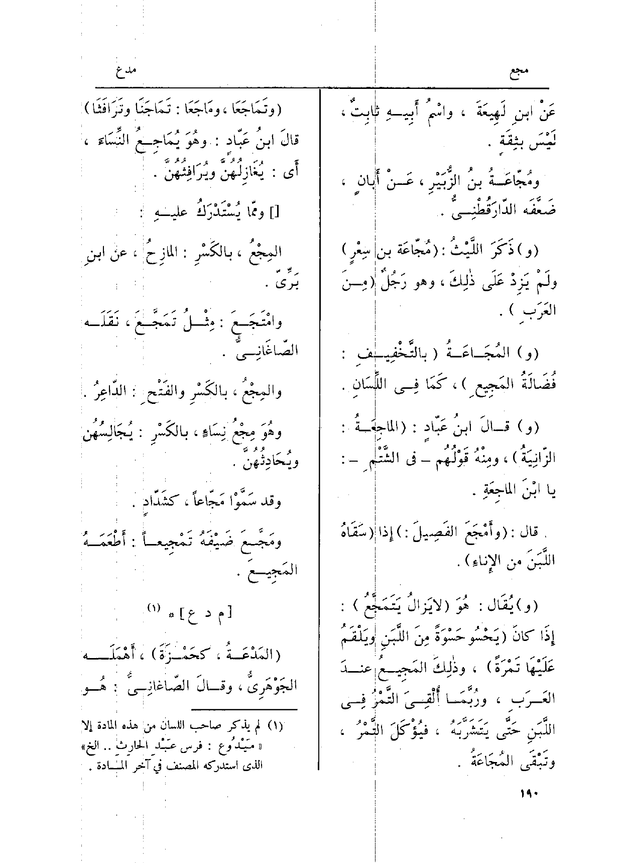 وقالَ ابنث عَبّادٍ: الماجِعَةُ: الزّانِيَةُ، ومنهُ قوْلُهُم فِي الشَّتْمِ: يَا ابْنَ الماجِعَةِ.