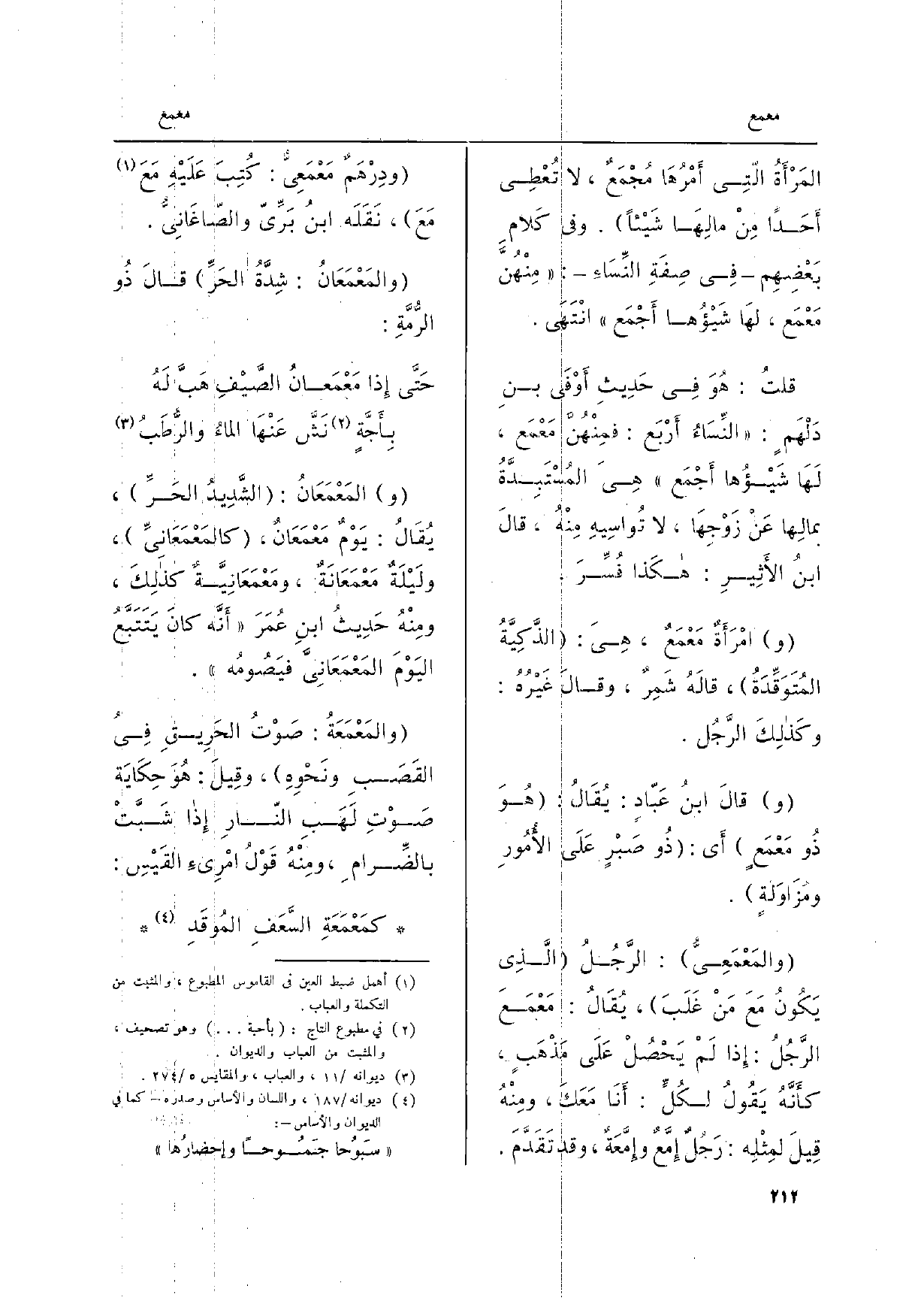 قلتُ: هُوَ فِي حَديثِ أوْفَى بنِ دَلْهَمٍ: النِّسَاءُ أرْبع: فمِنْهُنَّ مَعْمَع، لَهَا شَيْؤُها أجْمَع وهِيَ المُسْتَبِدَّةُ بمالِها عَنْ زَوْجِهَا، لَا تُواسِيهِ منْهُ، قالَ ابنُ الأثِيرِ: هَكَذَا فُسِّرَ.)