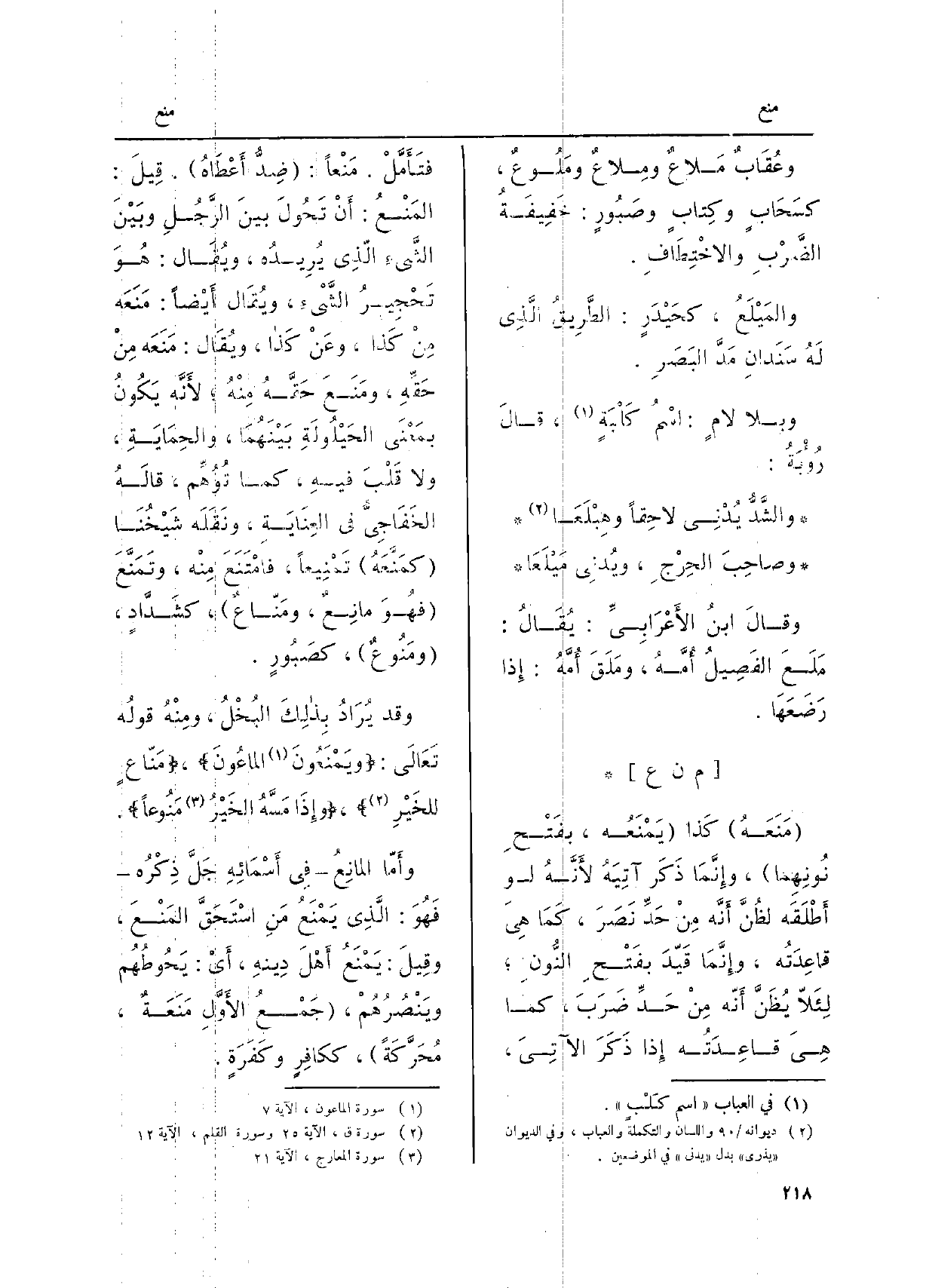 وأمّا المانِعُ فِي أسْمائِهِ جلَّ ذِكْرُه فهُوَ: الّذِي يَمْنَعُ منِ اسْتَحقَّ المَنْعَ، وقِيلَ: يَمْنَعُ أهْلَ دِينهِ، أَي: يحُوطُهُم ويَنْصُرُهُمْ، جَمْعُ الأوَّلِ مَنَعَةٌ، مُحَرَّكَةً، ككافِرٍ وكَفَرَةٍ.