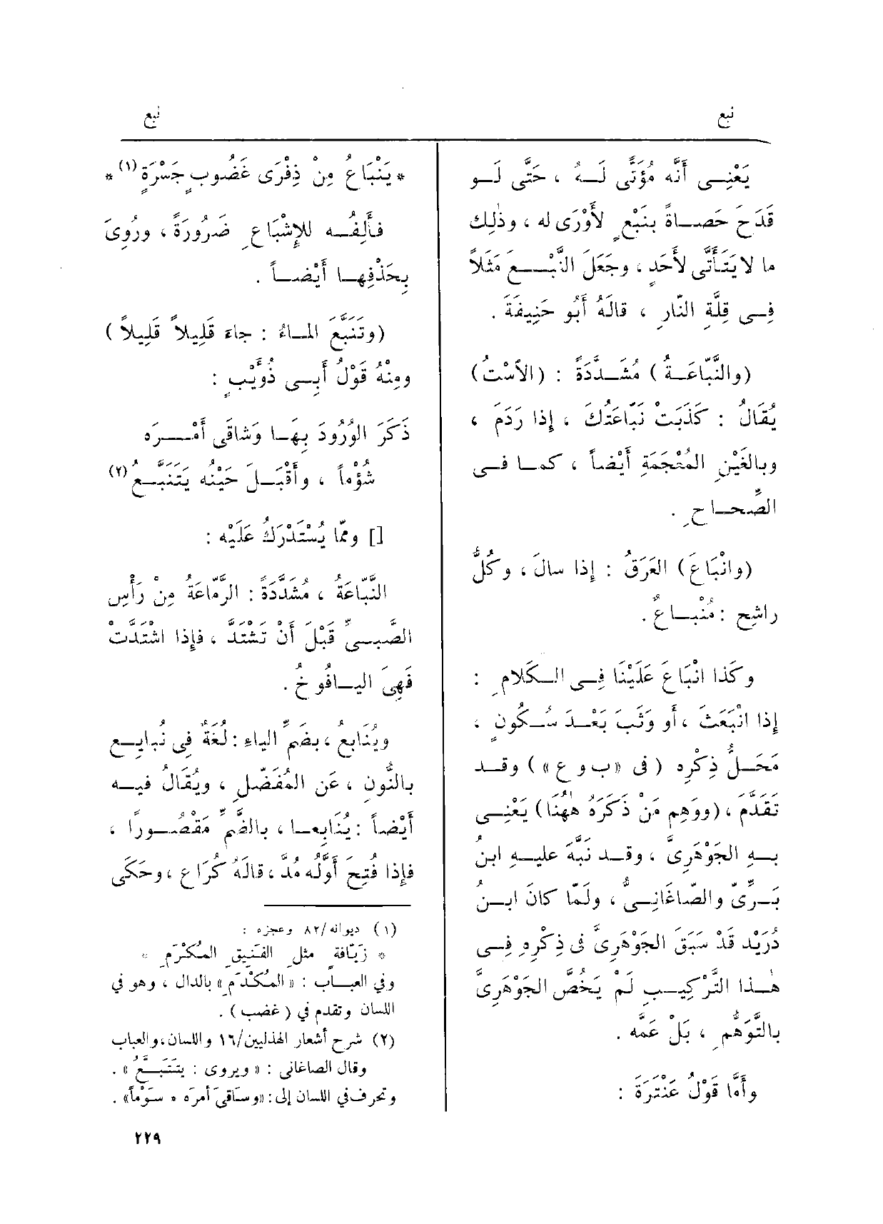 والنَّبّاعَةُ مُشَدَّدَةً: الاسْت يُقالُ: كَذَبَتْ نَبّاعَتُكَ، إِذا رَدَمَ، وبالغَيْنِ المُعْجَمَةِ أيْضاً كَمَا فِي الصِّحاحِ.