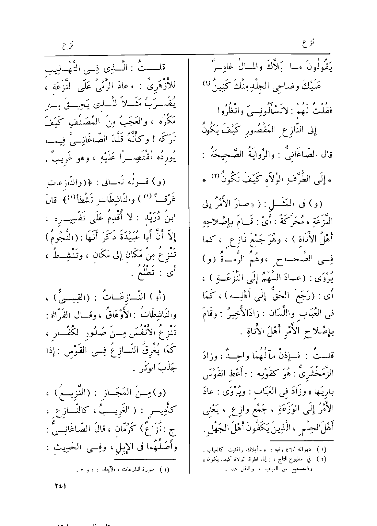 قَالَ الصّاغَانِيُّ: والرِّوايَةُ الصَّحِيحَةُ: إِلَى الطُّرَّفِ الوُلاّهِ كَيْفَ تكونُ وَفِي المَثَل: صارَ الأمْرُ إِلَى النَّزَعَةِ مُحَرَّكةً، أَي: قامَ بإصْلاحِهِ أهْلُ الأنَاةِ، وهُوَ جَمْعُ نازِعٍ، كَمَا)