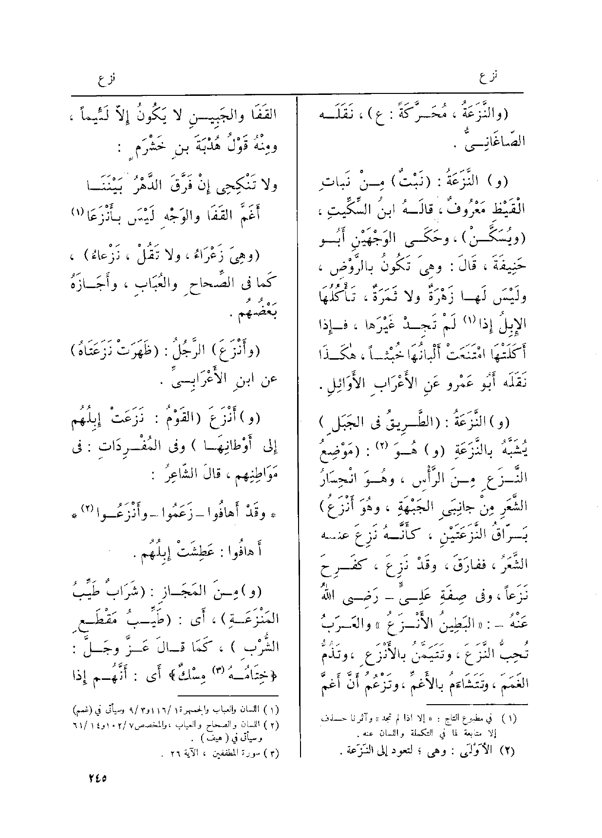 وهِيَ زَعْراءُ، وَلَا تَقُلْ، نَزْعاءُ، كَمَا فِي الصِّحاحِ والعُبَابِ، وأجَازَهُ بَعْضُهُم.