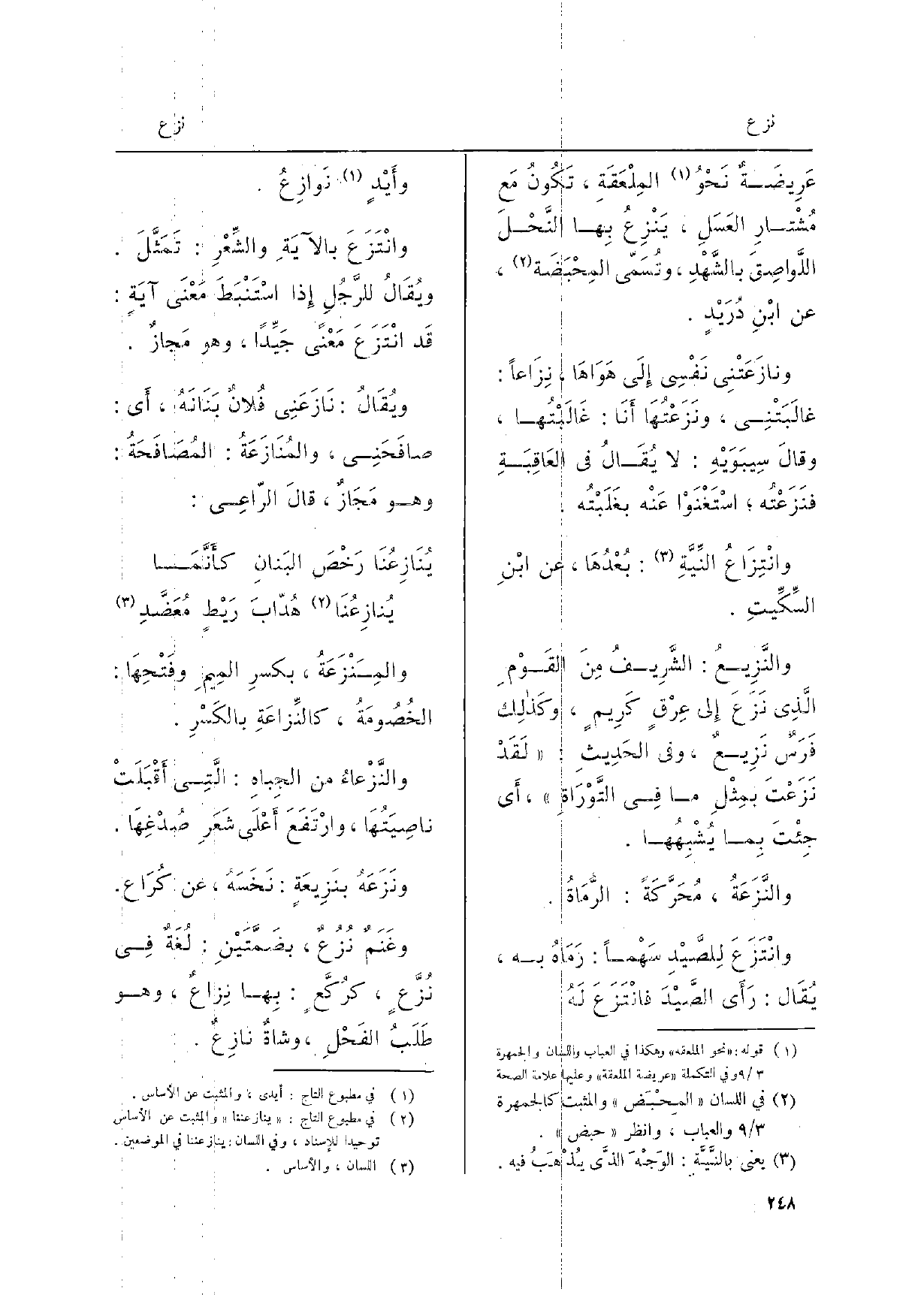 والنَّزِيعُ: الشَّرِيفُ منَ القَوْمِ الّذِي نَزَعَ إِلَى عِرْقٍ كَريمٍ، وكذلكَ فَرَسٌ نَزِيعٌ، وَفِي الحَديثِ: لَقَدْ نَزَعْتَ بمِثْلِ مَا فِي التَّوْرَاةِ، أَي جِئْتَ بِمَا يُشْبِهُها.