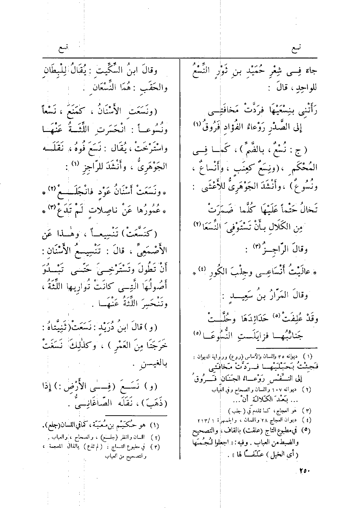 جاءَ فِي شِعْرِ حُمَيْد بنِ ثَوْرٍ النِّسْعُ للواحِدِ، قالَ: