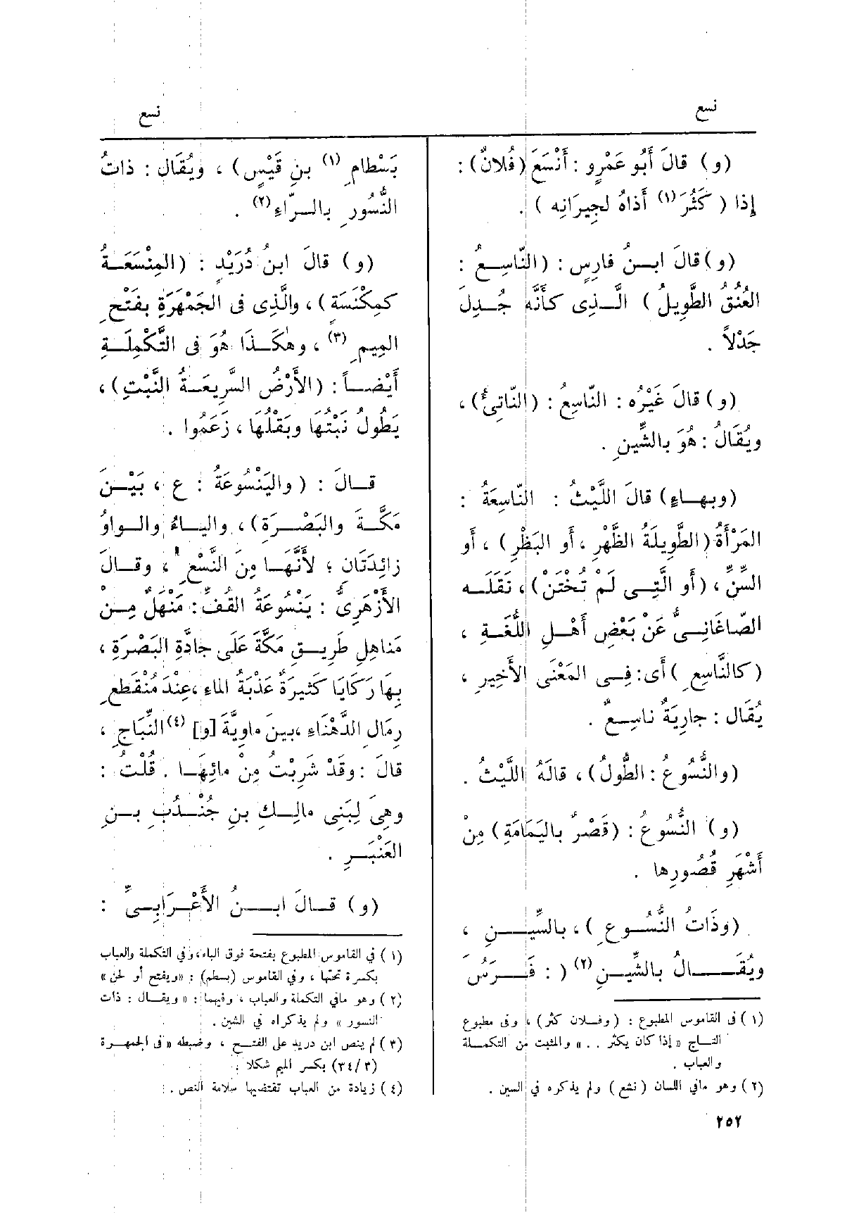 وذاتُ النُّسُوعِ، بالسِّينِ، ويُقَالُ بالشِّينِ: فَرَسَ بَسْطامِ بنِ قَيْسٍ، ويُقَالُ: ذَات النُّسُورِ بالرّاءِ.
