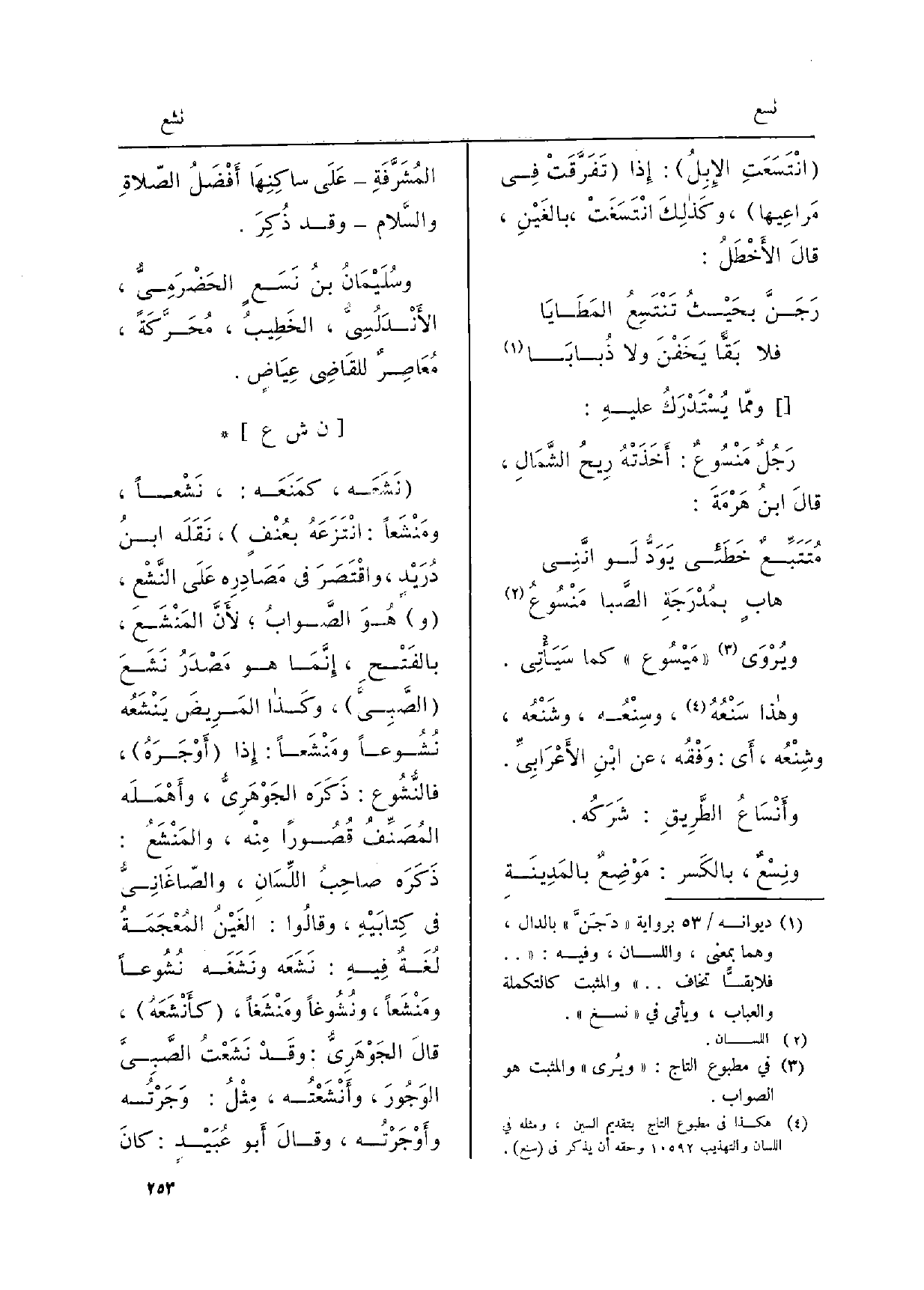 نَشَعَه، كمَنَعَه:، نَشْعاً، ومَنْشَعاً: انْتَزَعَه بعُنْفٍ، نَقله ابنُ دُرَيْدٍ، واقْتَصَرَ فِي مَصَادِرِه على النَّشْع، وهوَ الصَّوابُ، لأنَّ المَنْشَعَ، بالفَتْحِ، إنَّما هُوَ مَصْدَرُ نَشَعَ الصَّبِيُّ، وَكَذَا المرِيضُ يَنْشَعُه نُشُوعاً ومَنْشَعاً: إِذا أوْجَرَهُ، فالنُّشُوع: ذكَرَه الجَوْهَرِيُّ وأهْمَلَه المُصَنِّف قُصُوراً منْه، والمَنْشَعُ: ذكَرَه صاحِبُ اللِّسَانِ، والصّاغَانِيُّ فِي كِتابَيْهِ، وقالُوا: الغَيْنُ المُعْجَمَةُ لُغَةٌ فيهِ: نَشَعَه ونَشَغَه نُشُوغاً ومَنْشَعَاً، ونُشُوغاً ومَنْشَغَاً، كأنْشَعَهُ، قالَ الجَوْهَرِيُّ وقَدْ نَشَعْتُ الصَّبِيَّ الوَجُورَ، وأنْشَعْتُه مِثْلُ: وَجًرْتُه وأوْجَرْتُه، وقالَ أَبُو عُبَيْدٍ: كانَ