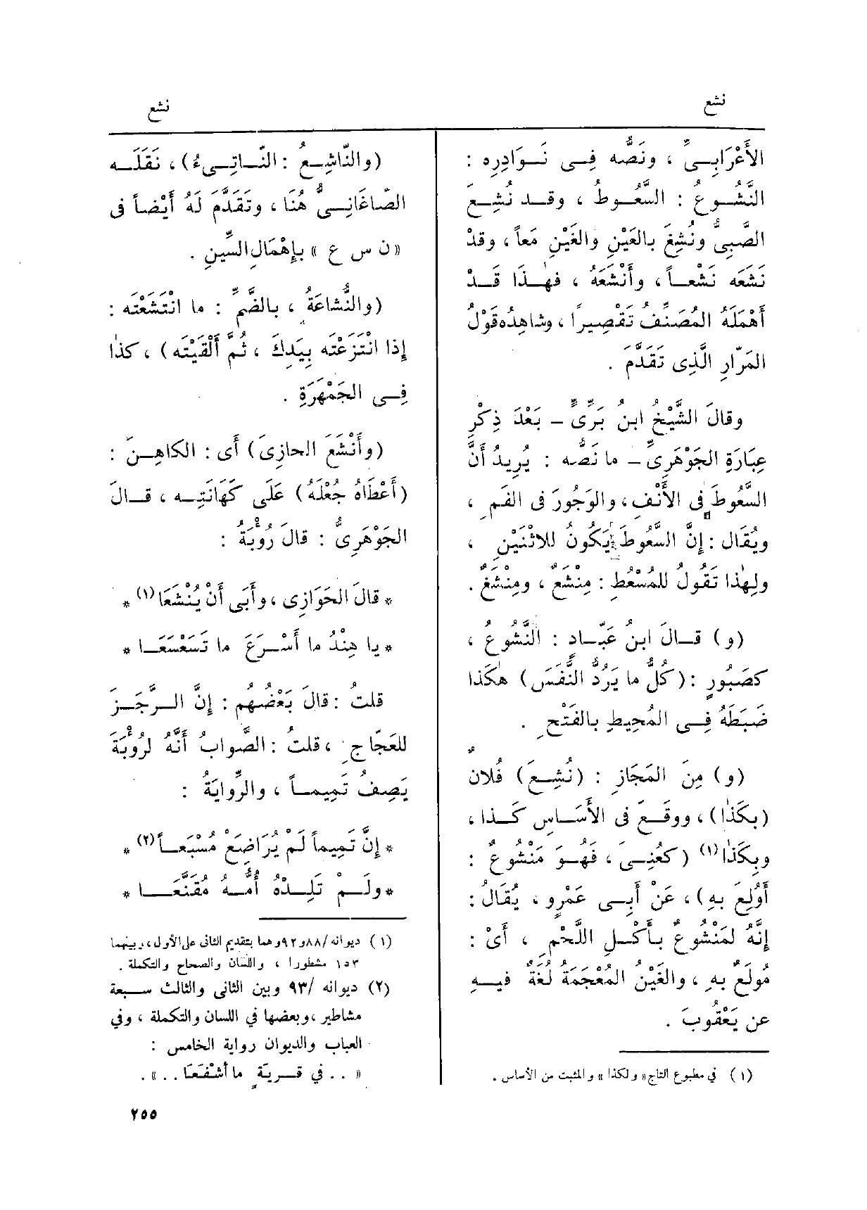 وأنْشَعَ الحازِيَ أَي: الكاهِنَ: أعْطَاهُ جُعْلَهُ على كَهَانَتِه، قالَ الجَوْهَرِيُّ: قالَ رُؤْبَةُ: قالَ الحَوَازِي، وأبَى أنْ يُنْشَعا يَا هِنْدُ مَا أسْرَعَ مَا تَسَعْسَعَا قلتُ: قالَ بعْضُهُم: إنَّ الرَّجَزَ للعَجّاجِ، قلتُ: الصَّوابُ أنَّهُ لرُؤْبَةَ يَصِفُ تَميماً، والرِّوايَةُ: إنَّ تَميماً لمْ يُرَاضِعْ مُسْبَعاً ولَمْ تَلِدْهُ أُمُّهُ مُقَنَّعَا