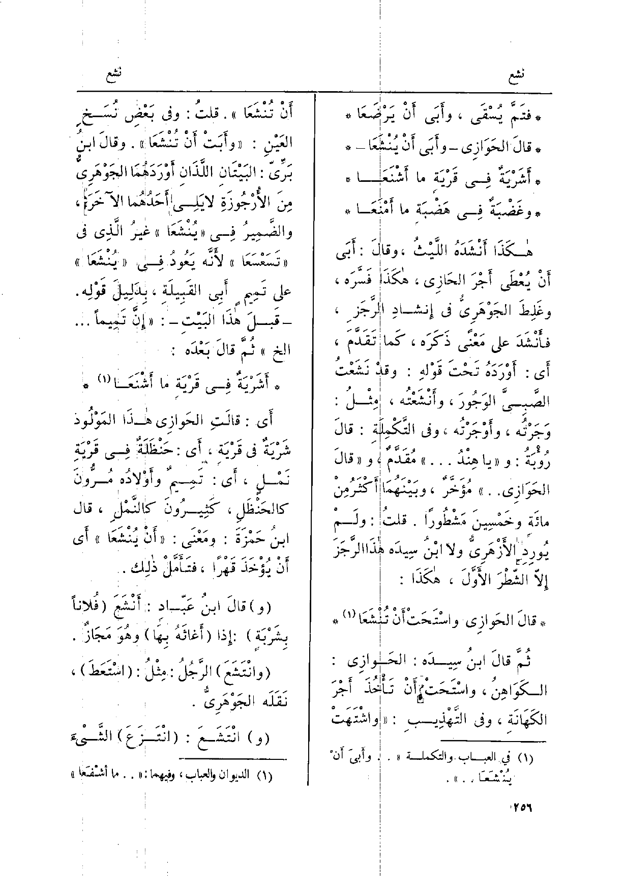 قلتُ: وَفِي بَعْضِ نُسَخِ العَيْنِ: وأبَتْ أنْ تُنْشَعَِا وقالَ ابنُ بَرِّيّ: البَيْتَانِ اللَّذانِ أوْرَدَهُمَا الجَوْهَرِيُّ منَ)
