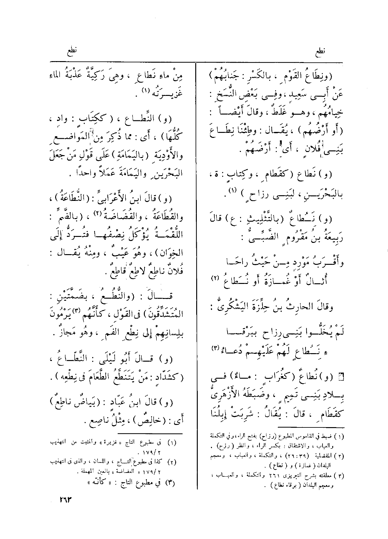 والنِّطاع، ككِتَابٍ: وادٍ: كُلُهَا، أَي: مِمَّا ذُكِرَ من المَواضعِ والأوْدِيَةِ باليَمَامَةِ على قَوْلِ منْ جَعَلَ البَحْرَينِ، واليمَامَةَ عَمَلاً وَاحِدًا.