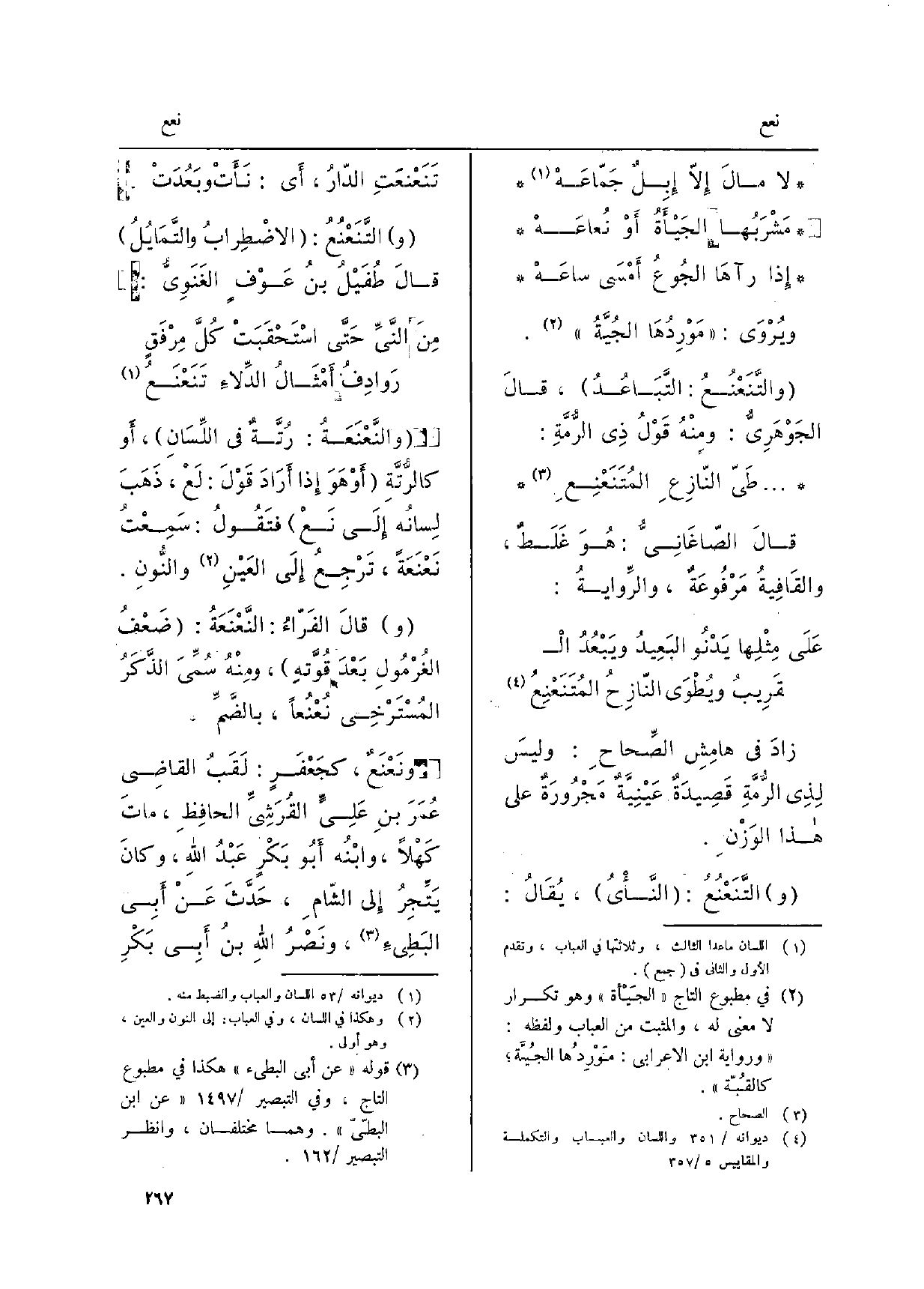 (على مِثْلِها يَدْنُو البَعِيدُ ويَبْعُدُ ال ... قَرِيبُ ويُطْوَى النّازِحُ} المُتَنَعْنِعُ)
