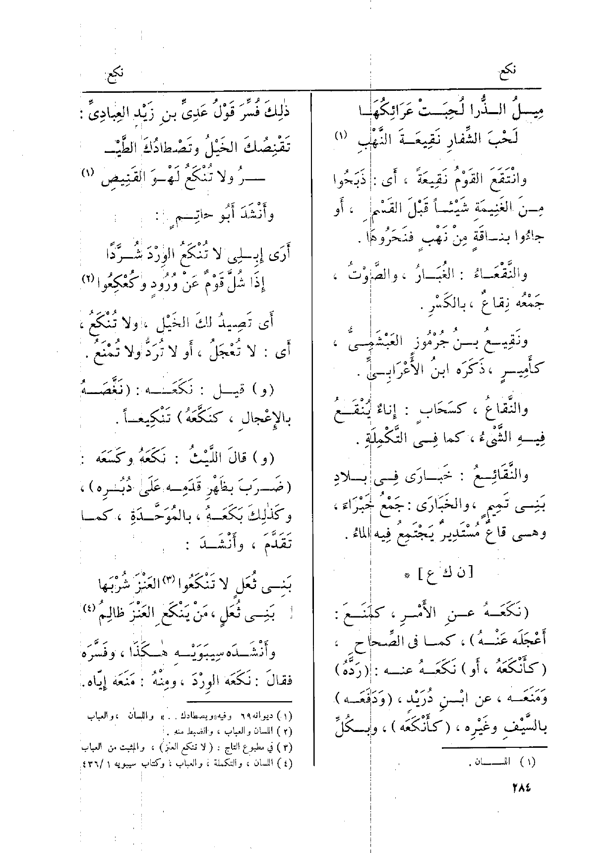 وأنْشَدَه سِيبَوَيءهِ هَكَذَا، وفَسَّرَه فقالَ: نَكَعَه الوِرْدَ، ومنْهُ: مَنَعَه إيّاه.