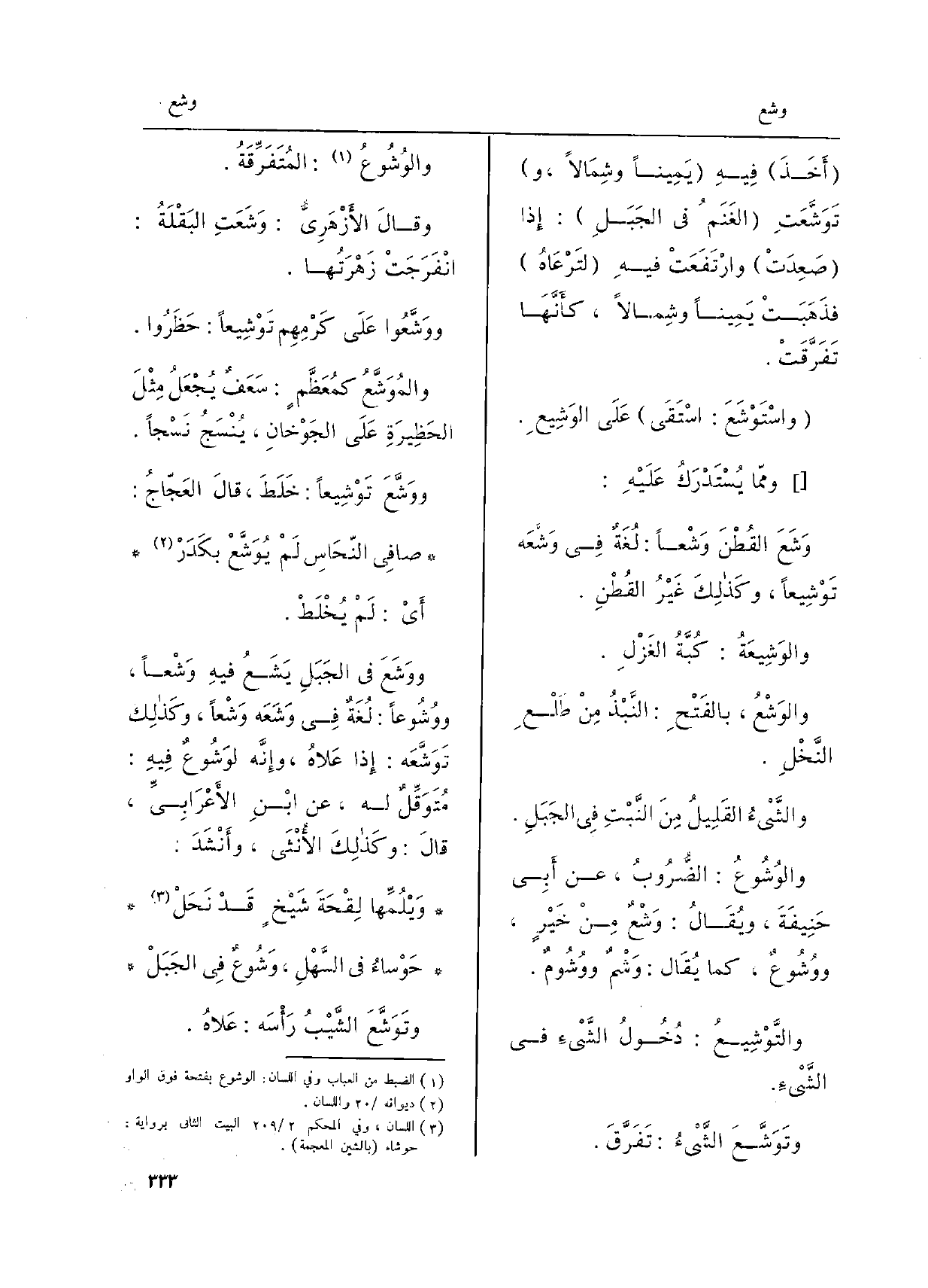 أخَذَ فِيهِ يَمِيناً وشِمالاً {وتَوَشَّعَتِ الغَنَمُ فِي الجَبَلِ: إِذا صَعِدَتْ وارْتَفَعَتْ فيهِ لتَرْعَاهُ فذَهَبَتْ يَميناً وشِمالاً، كأنَّهَا تَفَرَّقَتْ.