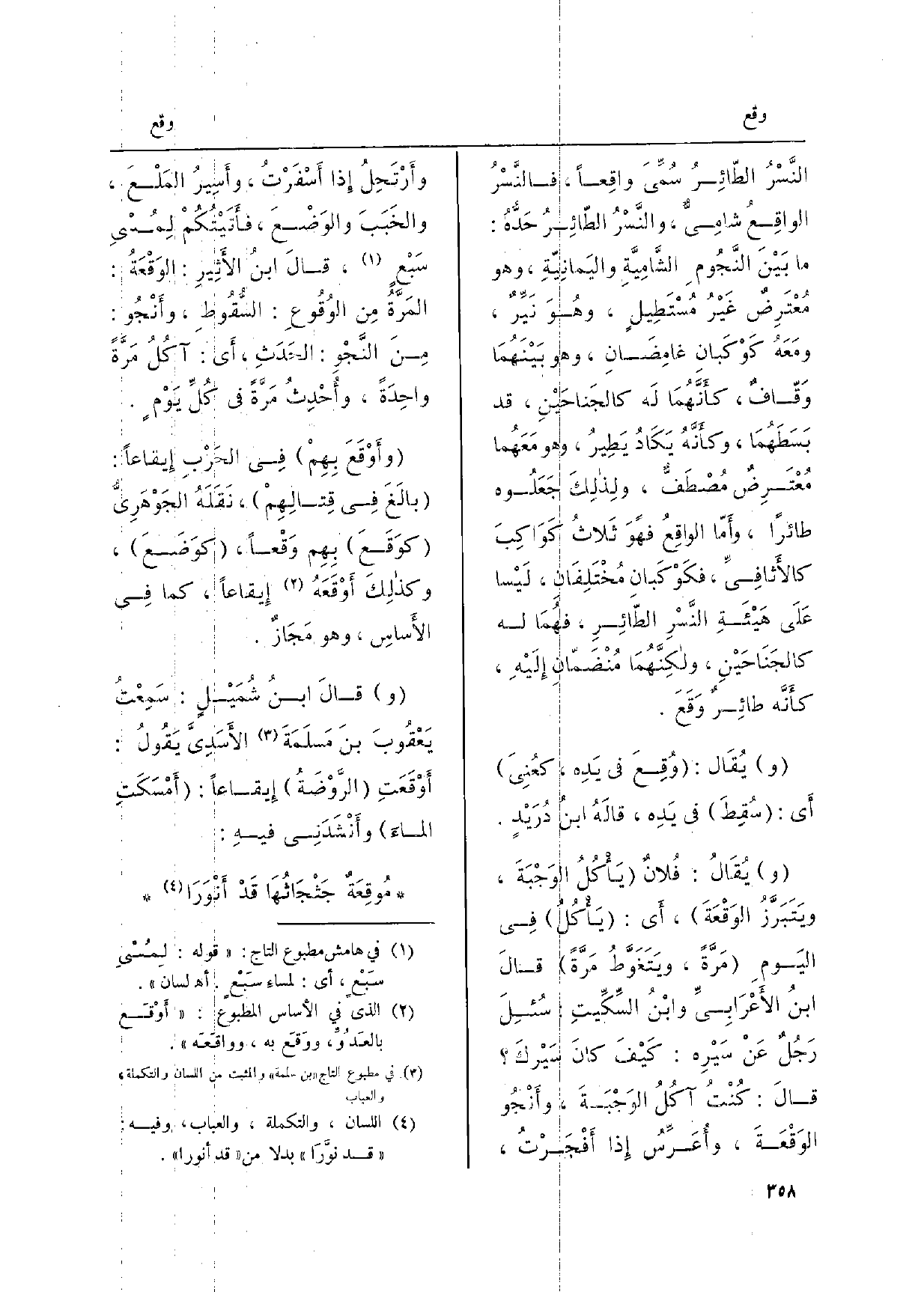 النَّسْرُ الطّائِرُ سُمِّيَ {واقِعاً، فالنَّسْرُ} الواقِعُ شامِيٌّ، والنَّسْرُ الطّائِرُ حَدُّهُ: مَا بَيْنَ النَّجُومِ الشَّامِيَّةِ واليَمانِيّةِ، وَهُوَ مُعْتَرِضٌ غَيْرُ مُسْتَطِيلٍ، وهُوَ نَيِّرٌ، ومَعَهُ كَوْكَبانِ غامِضَانِ وَهُوَ بَيْنَهُمَا وَقّافٌ، كأنَّهُمَا لَهُ كالجَناحَيْنِ، وَقد بَسَطُهمَا، وكأنَّهُ يَكَادُ يَطِيرُ، وَهُوَ مَعَهُما مُعْتَرِضٌ مُصْطَفٌّ، ولذلكَ جَعَلُوه طائراً، وأمَّا الواقِعُ فهوَ ثَلاثُ كَوَاكِبَ كالأثَافِيِّ، فكَوْكَبانِ مُخْتَلِفَانِ، لَيْسا على هَيْئَةِ النَّسْرِ الطّائِرِ، فهُمَا لَهُ كالجَنَاحَيْنِ، ولكنَّهُمَا مُنْضَمّانِ إليْهِ، كأنَّهُ طائِرٌ {وَقَعَ.