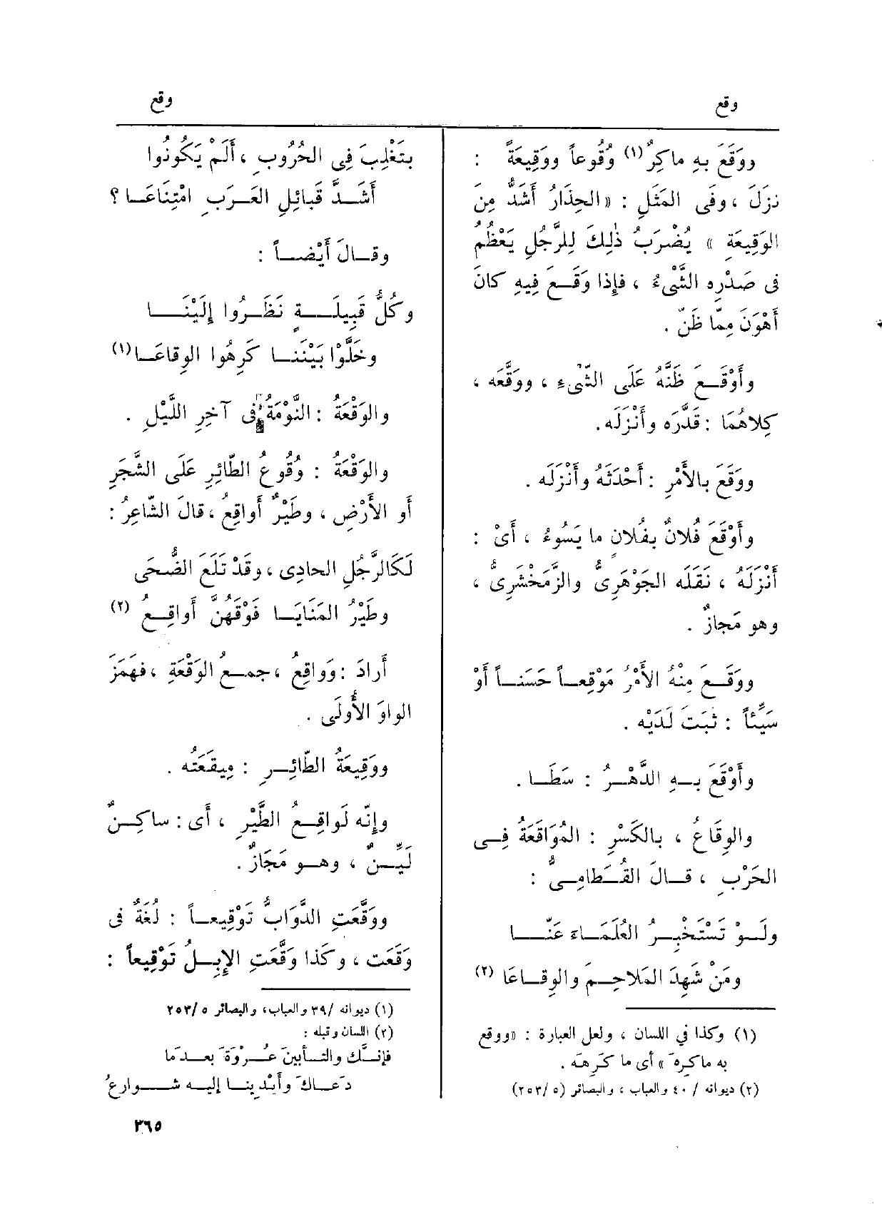 } والوِقَاعُ بالكَسْرِ: {المُوَاقَعَةُ فِي الحَرْبِ، قالَ القُطامِيُّ: