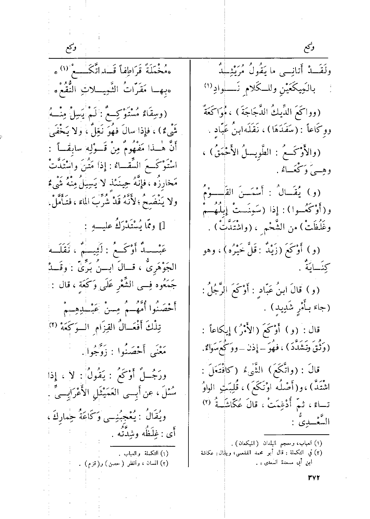 وقالَ ابنُ عبّادٍ: {أوْكَعَ الرَّجُلُ: جاءَ بأمْرٍ شَدِيدٍ.