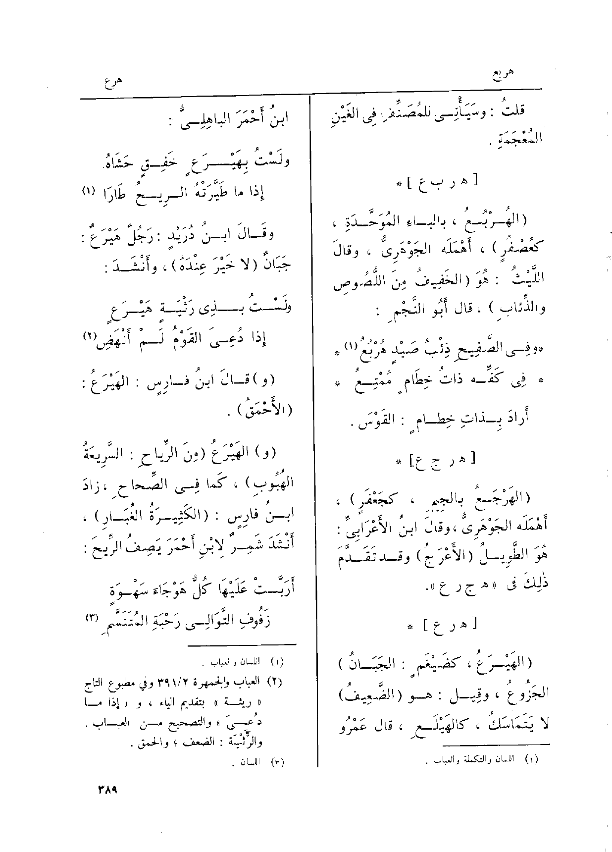 (ولَسْتُ بهَيْرَعٍ خَفِقٍ حَشاهُ ... إِذا مَا طَيَّرَتْهُ الرِيحُ طَارَا)