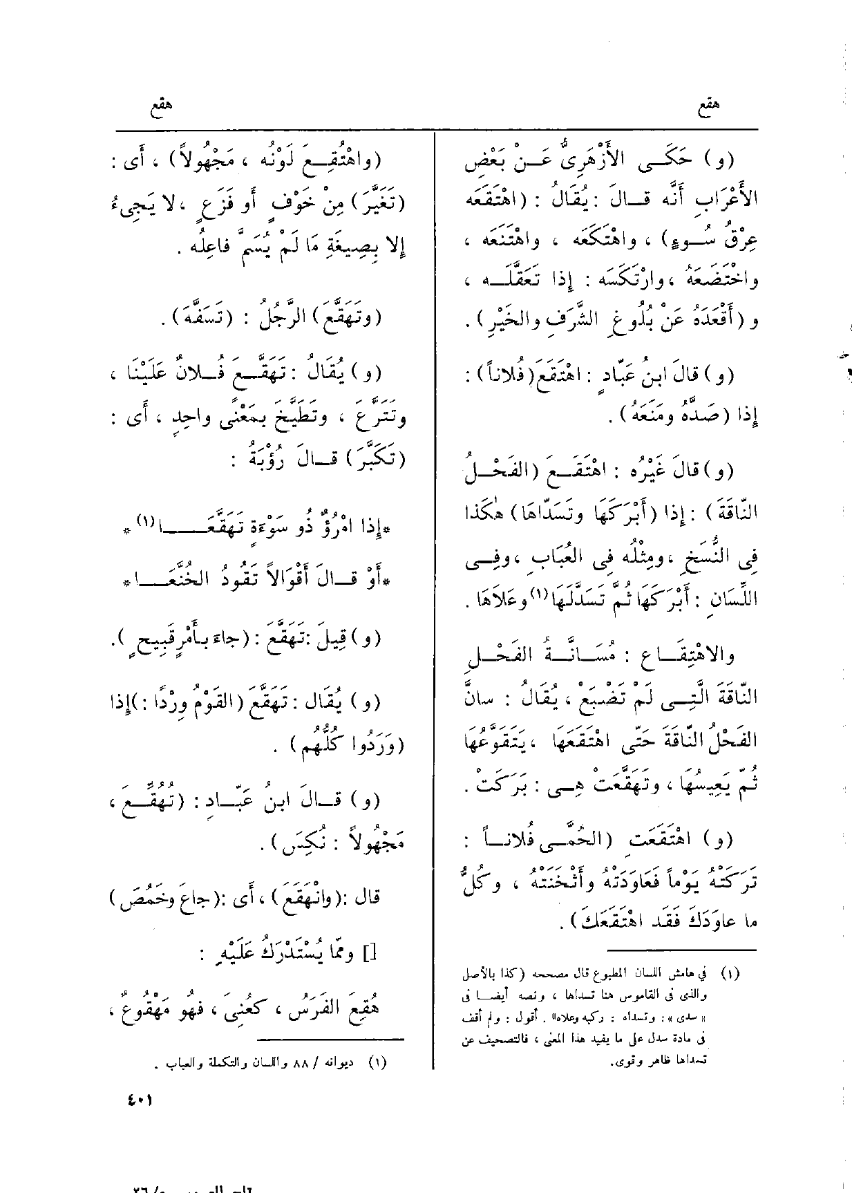 ويُقَالُ: تَهَقَّعَ القَوْمُ وِرْداً: إِذا وَرَدُوا كُلُّهُم.)