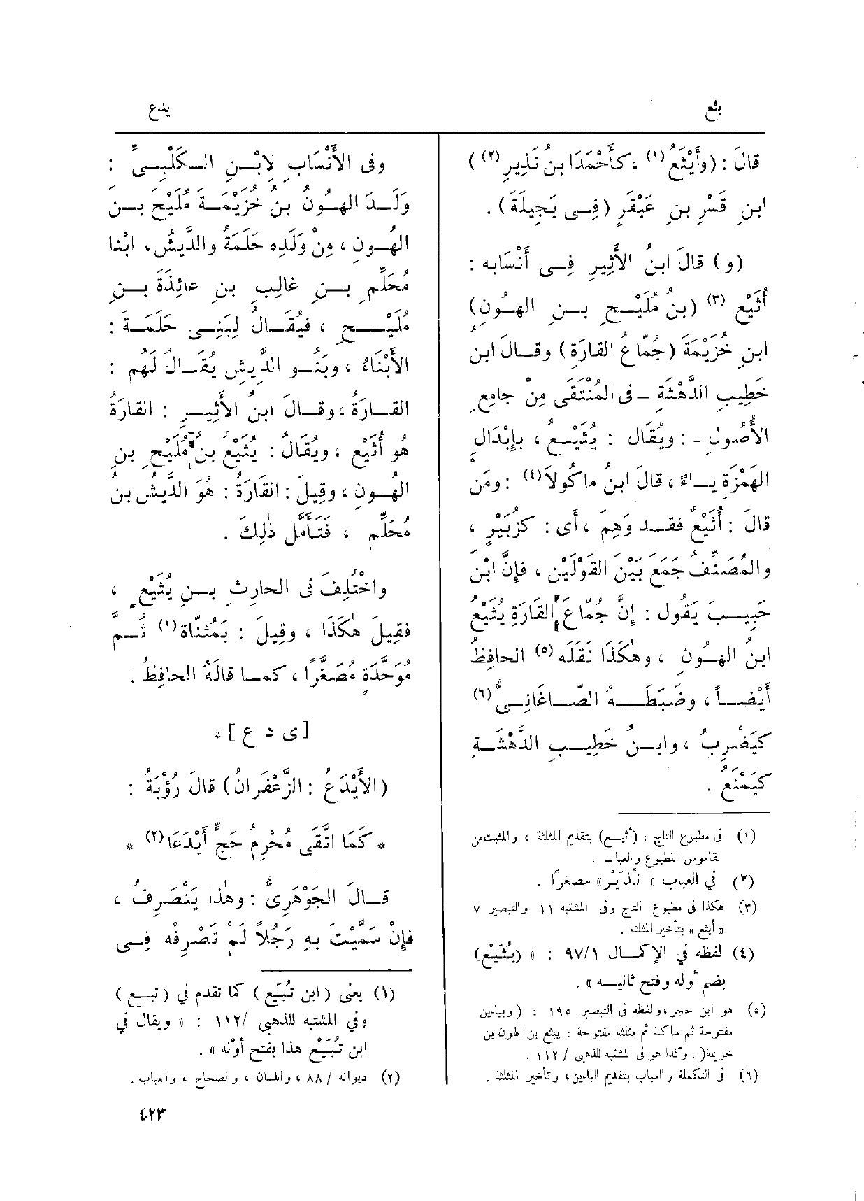 وقالَ ابنُ الأثِيرِ فِي أنْسَابِه: أُثَيْع بنُ مُلَيْحِ بنِ الهُونِ بنِ خُزَيمَةَ جُمّاعُ القارَةِ وقالَ ابنُ خَطِيبِ الدَّهْشَةِ فِي المُنْتَقَى منْ جامِعِ الأُصُولِ ويُقَالُ:} يُثَيْعُ، بإبْدَالِ الهَمْزَةِ يَاء، قالَ ابنُ ماكُولا: ومَنْ قالَ: أُثَيْعٌ فقد وَهِمَ، أَي: كزُبَيْرٍ، والمُصَنِّف جَمَعَ بينَ القَوْلَيْن، فإنَّ ابنَ حَبِيبَ يَقُول: إنَّ جُمّاعَ القَارَةِ يُثَيْعُ بنُ الهُونِ، وَهَكَذَا نَقَلَه الحافِظُ أيْضاً وضَبَطَه الصّاغَانِيُّ كيَضْرِبُ، وابنُ خَطِيبِ الدَّهْشَةِ كيَمْنَعُ.