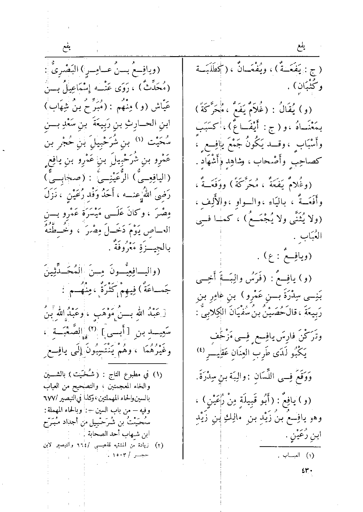 ويافِعُ بنُ عامِرٍ البَصْرِيُّ: مُحَدِّثٌ، رَوَى عَنهُ إسْمَاعِيلُ بنُ عَيّاش ومنْهُم: مُبَرِّحُ بنُ شهَاب بنِ الحارِثِ بنِ رَبِيعَةَ بنِ سَعْدِ بنِ سُحَيْت بنِ شُرَحْبِيلَ بنِ حُجْرِ بن عمْروِ بنِ شُرَحِبيلَ بنِ عَمروِ بنِ يافِعٍ} - اليافِعِيُّ الرُّعَيْنِيُّ: صاحبِيٌّ رَضِي الله عَنهُ، أحَدُ وَفْدِ رُعَيٍْ، نَزَلَ مِصْرَ، وكانَ على مَيْسَرَةَ عَمروِ بن العاصِ يَوْمَ دَخَلَ مِصْرَ وخُطَّتُهُ بالجِيزَةِ مَعْروفَةٌ.