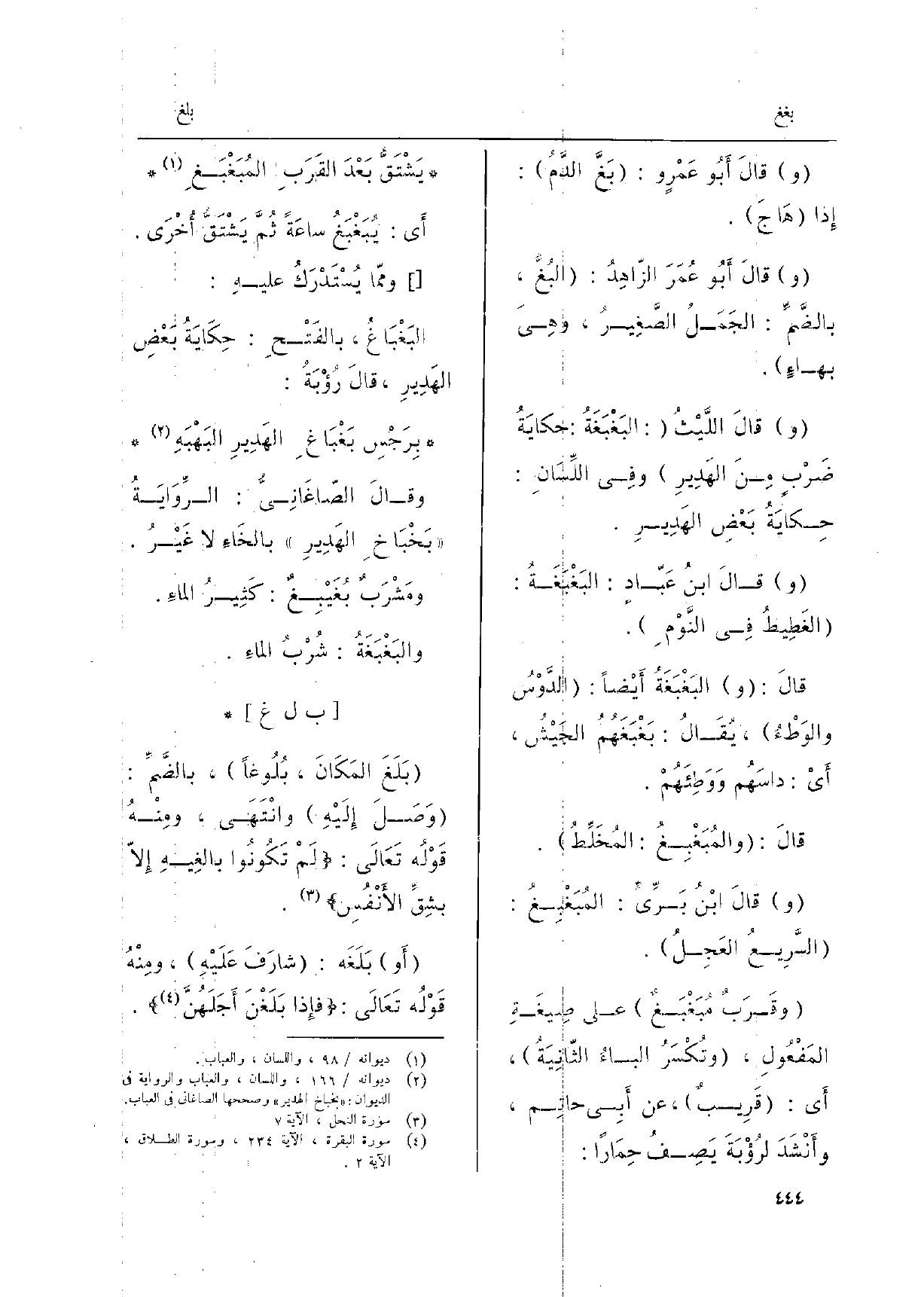 وقالَ ابنُ برِّيٍّ:} المُبَغْبِغُ: السَّرِيعُ العَجِلُ.)