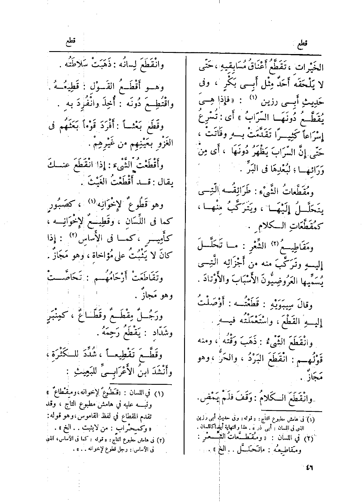ومُقَطَّعاتُ الشَّيءِ: طَرَائِقُه الّتِي يتَحَلَّلُ إلَيْهَا، ويَترَكَّبُ مِنْها، كمُقَطَّعاتِ الكلامِ.