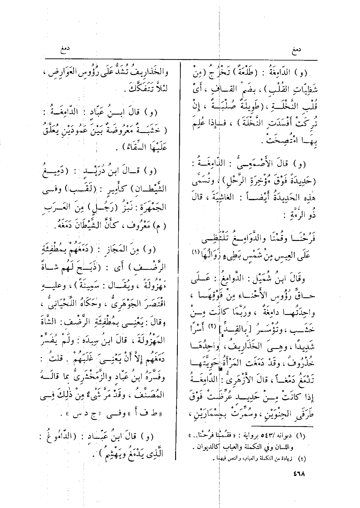 وقالَ ابنُ عبادٍ: الدّامُوغُ: الّذِي يَدْمَغُ ويَهْشِمُ.
