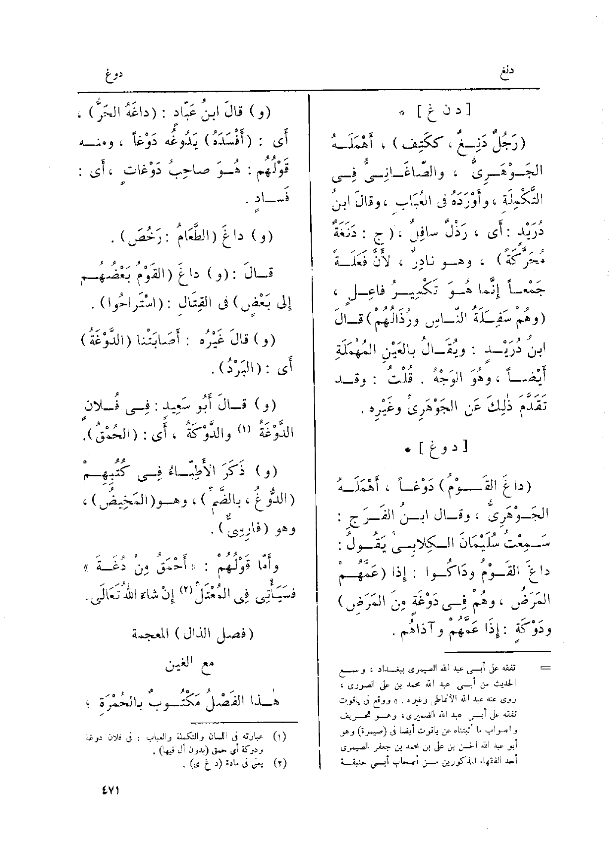 (فصل الذَّال الْمُعْجَمَة مَعَ الْغَيْن)