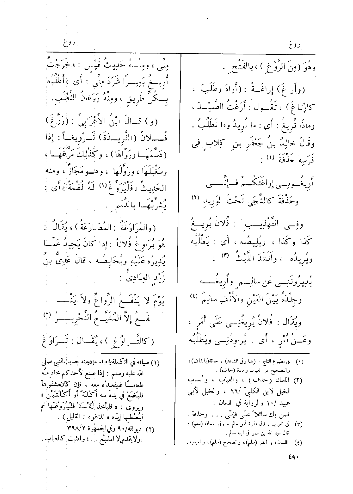 وهُوَ منَ {الرَّوْغِ بالفَتْحِ.