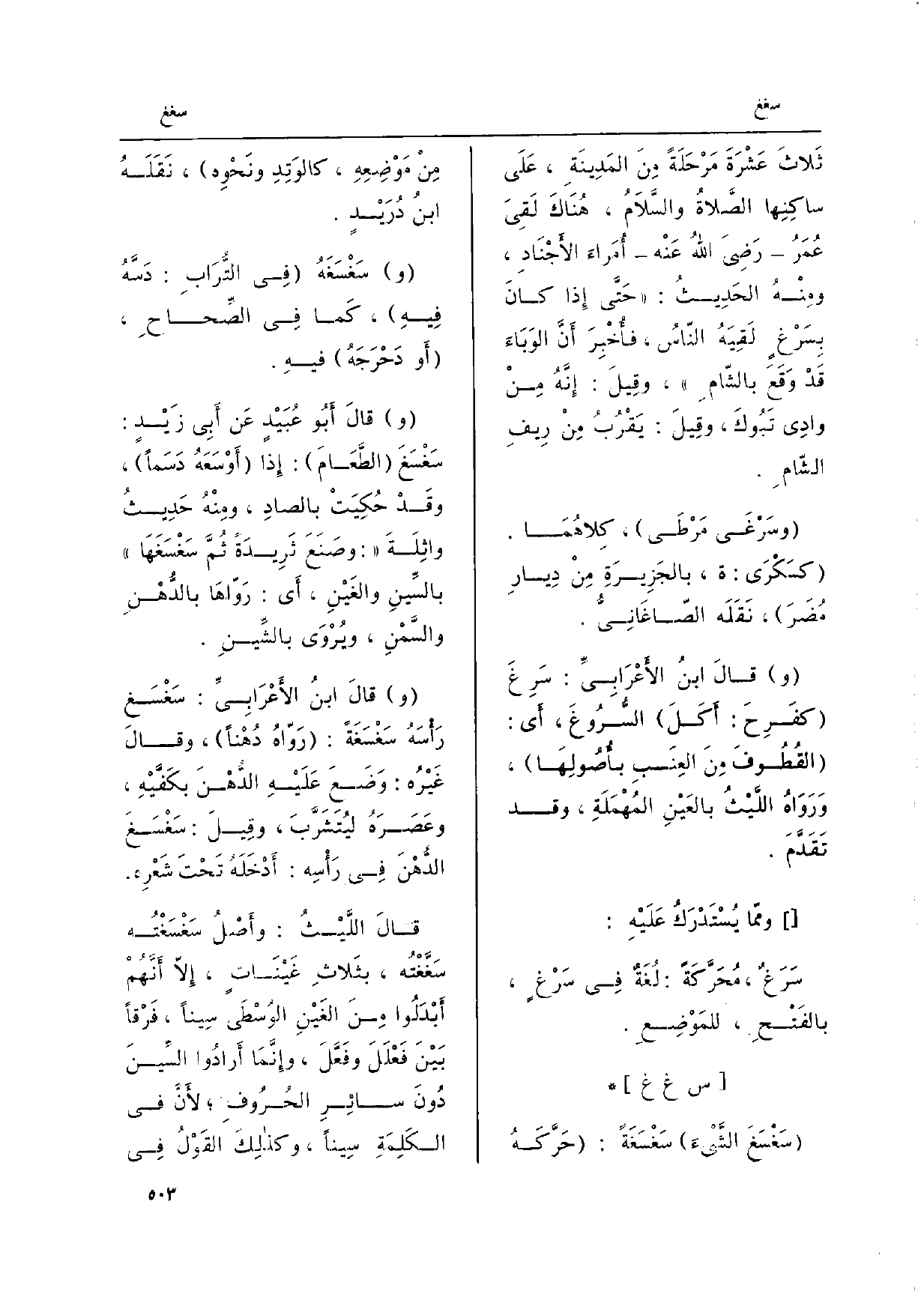 وممّا يستدْرَكُ عليهِ: سَرَغٌ، مُحَرَّكَةً: لُغَةٌ فِي سَرْغٍ، بالفَتْحِ للمَوْضِعِ.