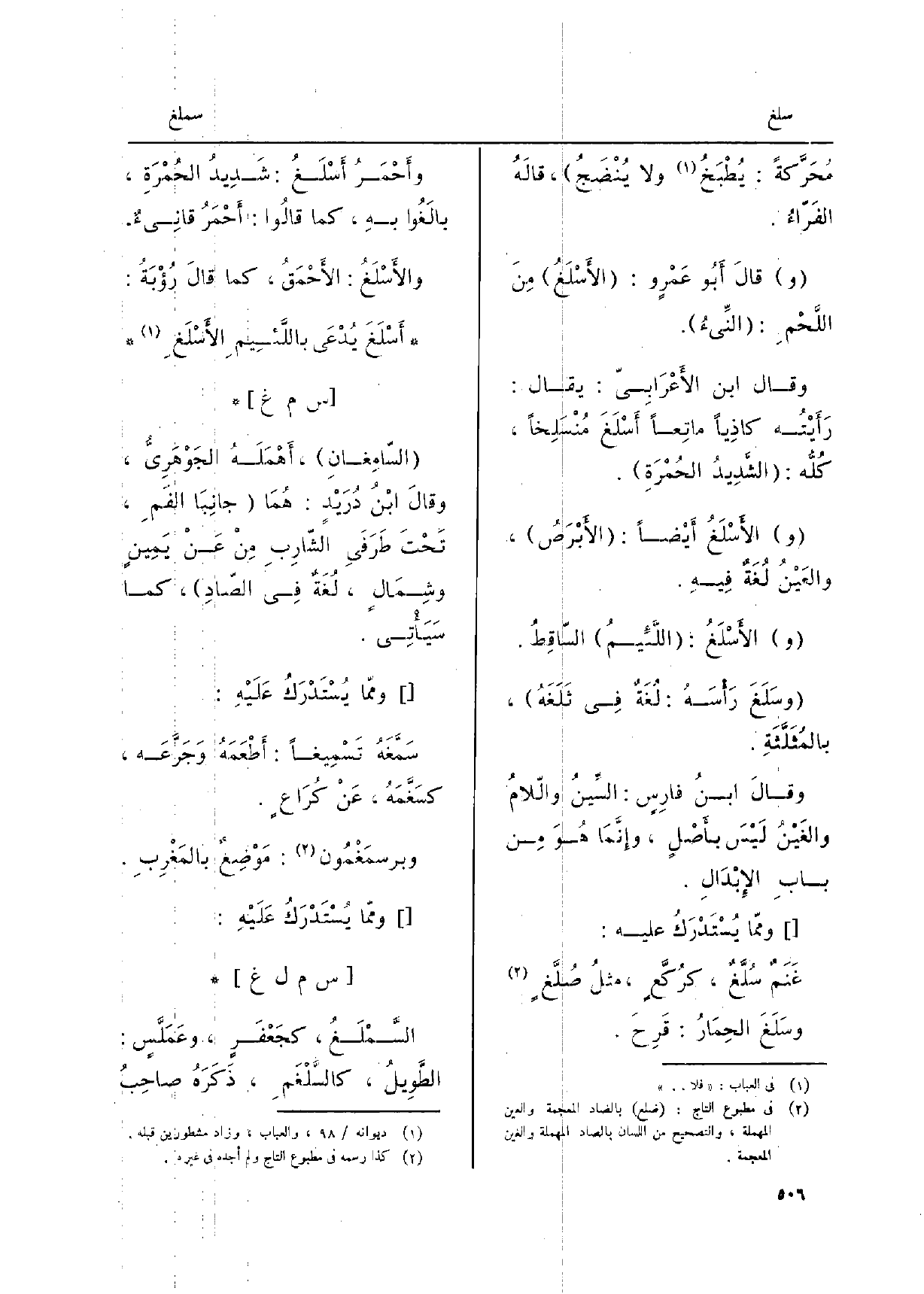 وممّا يستدْرَكُ عليهِ: غَنَمٌ سُلَّغٌ، كرُكَّعٍ، مثلُ صُلَّغٍ وسَلَغَ الحِمَارُ: قَرِحَ.