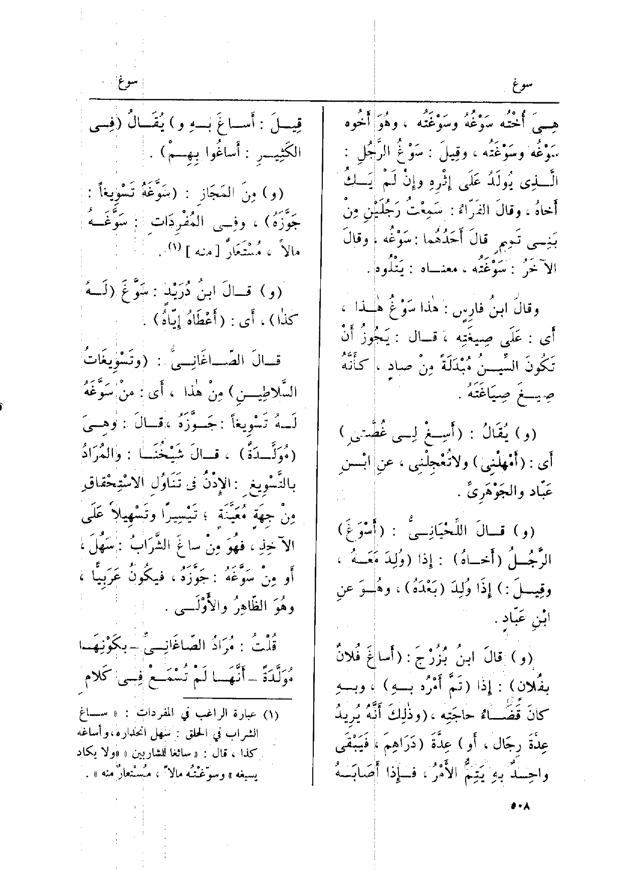 وقالَ اللِّحْيَانِيِّ: {أسْوَغَ الرَّجُلُ أخاهُ: إِذا وُلِدَ مَعَهُ، وقيلَ: إِذا وُلِدَ بَعْدَهُ، وهُوَ عَن ابنِ عَبّادٍ.)