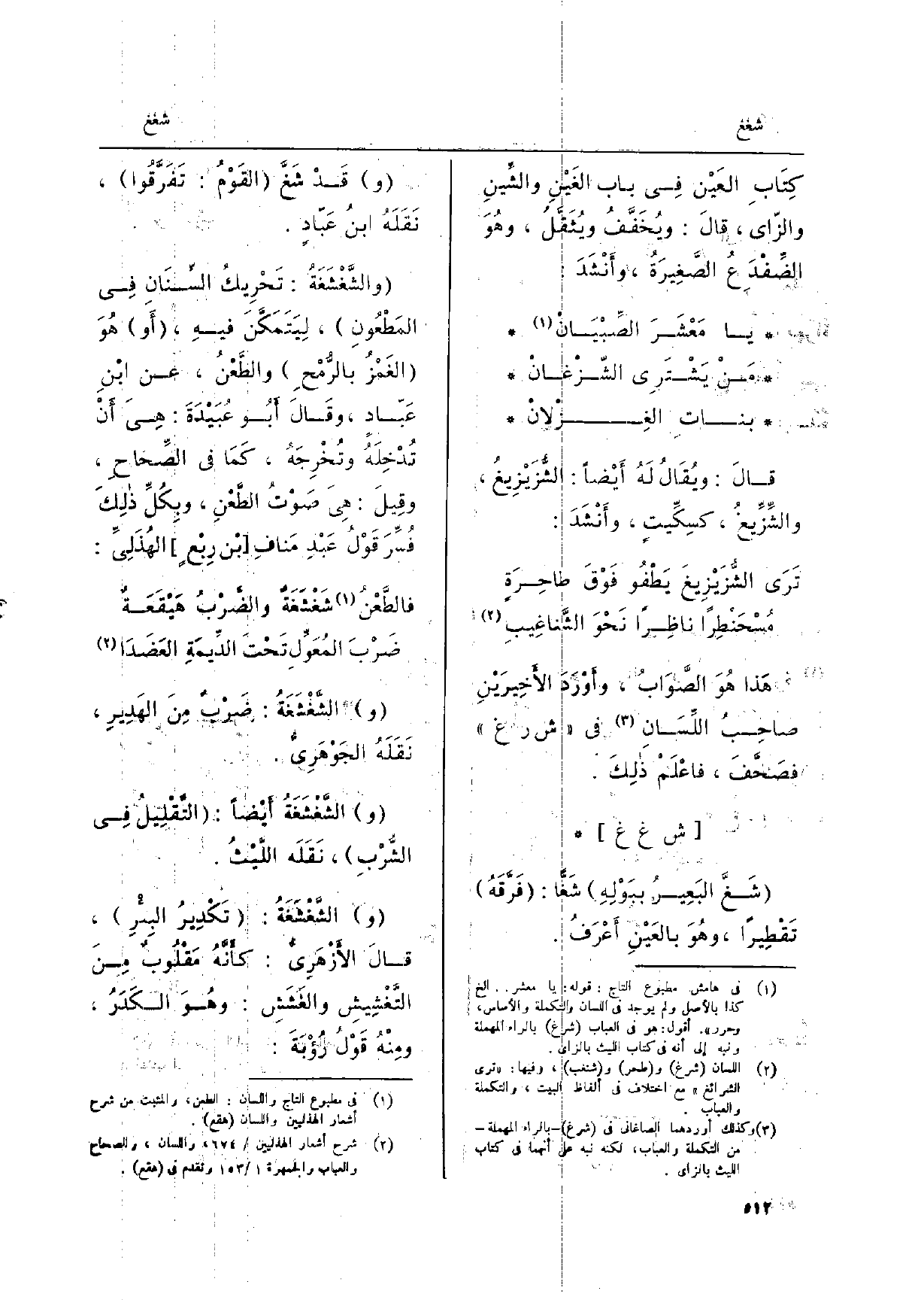 هَذَا هُوَ الصَّوَابُ، وأوْرَدَ الأخِيرَيْنِ صاحِبُ اللِّسَانِ، فِي شرغ فصحَّفَ فاعْلَمْ ذلكَ.
