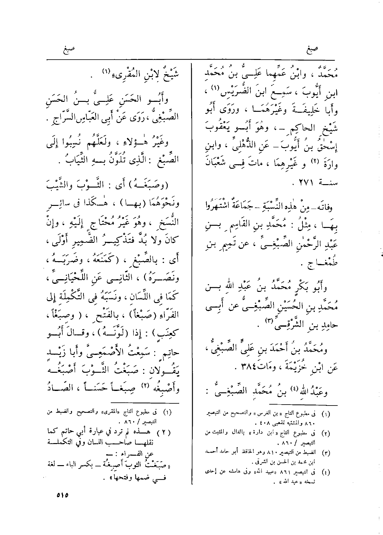 وفاتَه منْ هَذِه النِّسْبَةِ جمَاعَةٌ اشتَهَرُوا بهَا، مثْلُ: مُحَمَّدِ بنِ القَاسِمِ بنِ عَبدِ الرحمنِ الصِّبْغِيِّ، عَن تَمِيمِ بنِ طُمْغاجِ.)