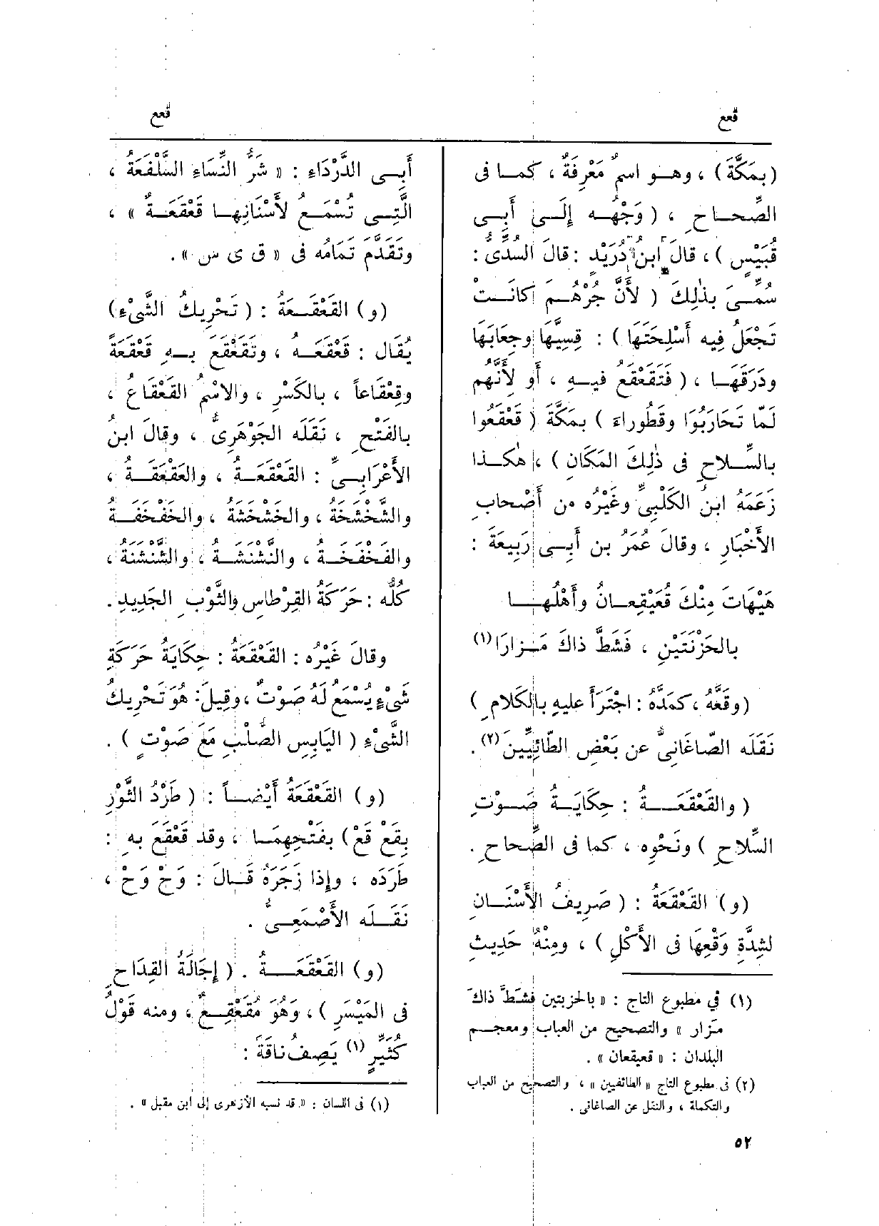 بمَكَّةَ، وَهُوَ اسمٌ مَعْرِفَةٌ، كَمَا فِي الصِّحاحِ، وَجْهُه إِلَى أبِي قُبيْسٍ، قالَ ابنُ دُرَيْدٍ: قالَ السُدِّيُّ: سُمِّيَ بذلِكَ لأنَّ جُرْهُمَ كانَتْ تَجْعَلُ فِيهِ أسْلِحَتَهَا: قِسِيَّهَا وجِعَابَهَا ودَرَقَهَا، {فَتَقَعْقَعُ فيهِ، أَو لأنَّهُم لَمّا تَحَارَبُوَا وقَطُوراءَ بمَكَّةَ} قَعْقَعُوا بالسِّلاحِ فِي ذلِكَ المَكَانِ، هَكَذَا زَعَمَهُ ابنُ الكَلْبِيِّ وغَيْرُهُ من أصْحابِ الأخْبَارِ، وقالَ عُمَرُ بن أبي رَبِيعةَ:)