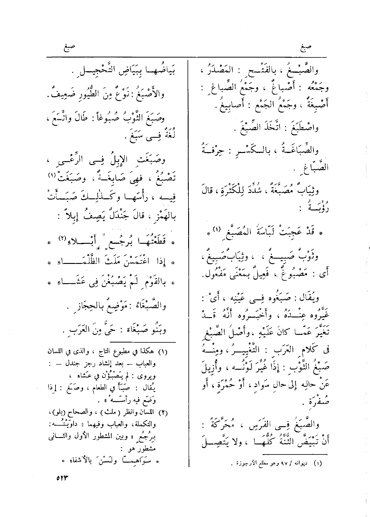 والصِّبَاغَةُ، بالكَسْرِ: حِرْفَةُ الصَّبّاغِ.)
