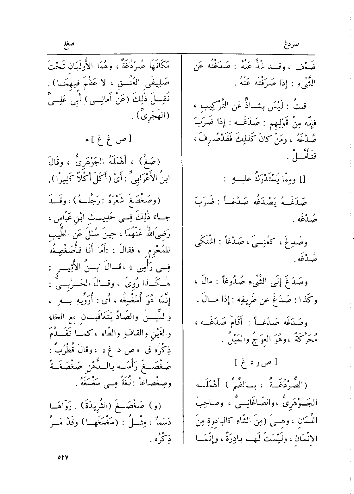 {صَغَّ، أهْمَلَهُ الجَوْهَرِيُّ وقالَ ابنُ الأعْرَابِيّ: أَي أكَلَ أكْلاً كَثِيراً.