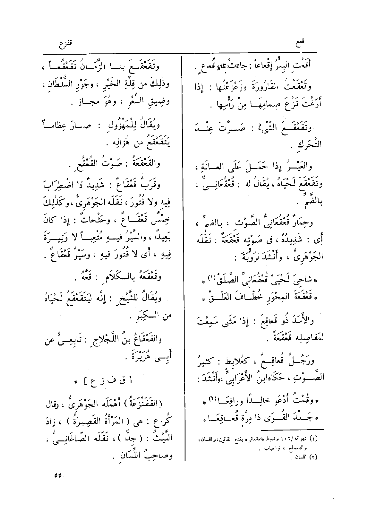 } وقَعْقَعْتُ القَارُورَةَ وزَعْزَعتُها: إِذا أزَغْتَ نَزْعَ ضِمامِهَا مِنْ رأسِها.)