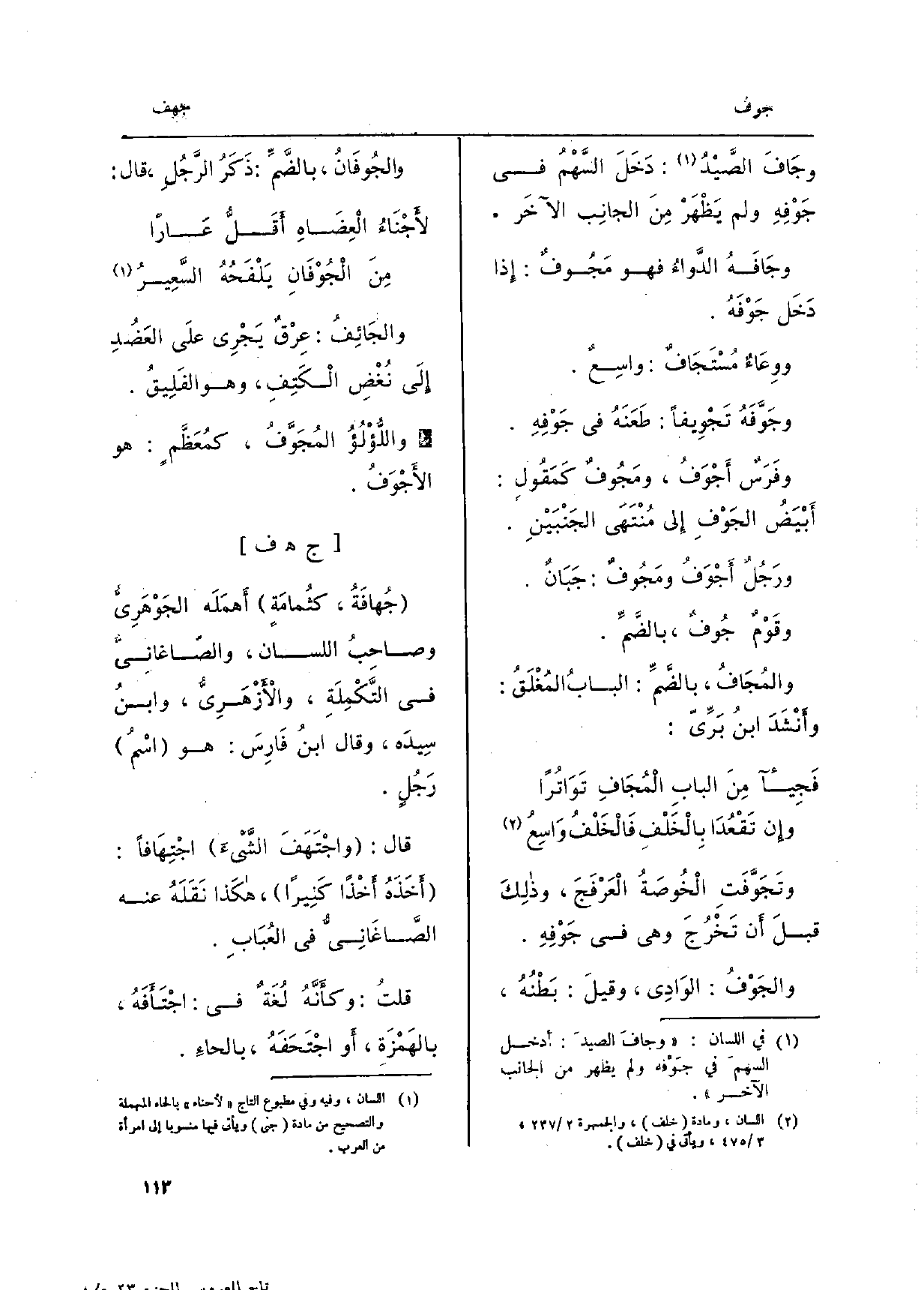 {وجَافَ الصَّيْدُ: دَخَلَ السَّهْمُ فِي} جَوْفِهِ وَلم يَظْهَرْ مِنَ الجانِب الآخَر.